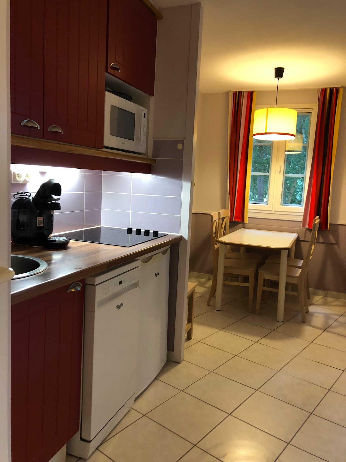 Este apartamento (6 camas) consta de una sala de estar con una cocina abierta, un dormitorio con una cama doble, un pequeño dormitorio con una litera. Dispone de un cuarto de baño con bañera y un aseo independiente con lavabo. En la planta baja, se accede a una terraza privada con vistas al campo de golf. El apartamento se encuentra en el corazón de la residencia PIERRE ET VACANCES con 4 piscinas, una de ellas climatizada, zonas de juegos, tenis de mesa, voleibol...