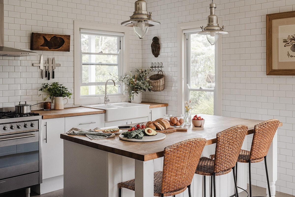 Cabaña de playa por excelencia de los años 50. Camina hasta la playa, el lago, el parque nacional y la cafetería local. Una cama tamaño queen y 2 individuales tamaño king, cocina y baño nuevos, aire acondicionado, chimenea de leña, barbacoa y un gran jardín vallado. Aparca el coche y ve andando a todas partes. Paraíso para los entusiastas del aire libre... paseos en barco, natación, buceo, surf, ciclismo, kayak, surf de remo, senderismo. Los canguros visitan la casa, los niños montan en bicicleta por las calles. Perfecto para parejas y familias pequeñas.