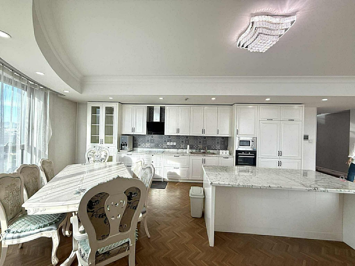 Lujoso apartamento estudio a pocos pasos de la tienda del Departamento de Estado, la mejor ubicación posible en todo Ulaanbaatar. Mobiliario de buen gusto. Cama tamaño king, cómodo sofá, cocina totalmente equipada, lavavajillas, chimenea, wifi y un televisor 4K de 49 pulgadas con una suscripción de cable Univision, mesa de comedor. Disfruta de hermosas vistas a la calle más famosa de Ulaanbaatar, Peace Avenue, a través de las ventanas de gran tamaño. Aire acondicionado. Compra y cena fácilmente en la gran cantidad de tiendas y restaurantes que hay justo afuera.