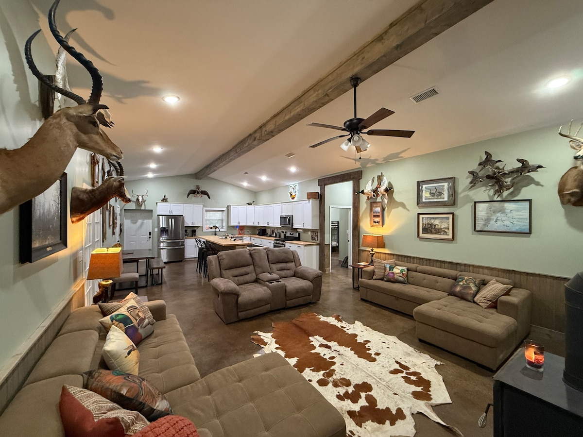 Surrounded by nature, this property is within walking distance of the White River & backs up to the Cache River National Wildlife Refuge, placing you right in the heart of some of Arkansas’s best outdoor recreation. Guests can enjoy excellent fishing, as well as duck, deer & turkey hunting during the appropriate seasons. Lodge-style sleeping upstairs, with bathroom, kitchen & entertainment area downstairs. Upstairs features 3 queen & 2 full beds to accommodate up to 10 people.