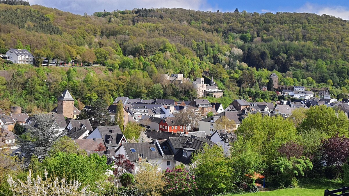 En el apartamento de 60 metros cuadrados con entrada privada encontrarás todo lo que necesitas para unas vacaciones. 1 cama doble + 1 sofá cama con capacidad para un máximo de 4 personas - Aparcamiento en frente de la casa En pocos minutos se puede llegar a pie al bosque, a la montaña Michelsberg, de 588 metros de altura, y se puede caminar en todas las direcciones. En coche se tarda una buena media hora en llegar a Nürburgring, al río Ahr, al lago Ruhrsee o a Phantasialand Brühl. Tiendas a 10 km de distancia. Se admiten perros previo acuerdo.