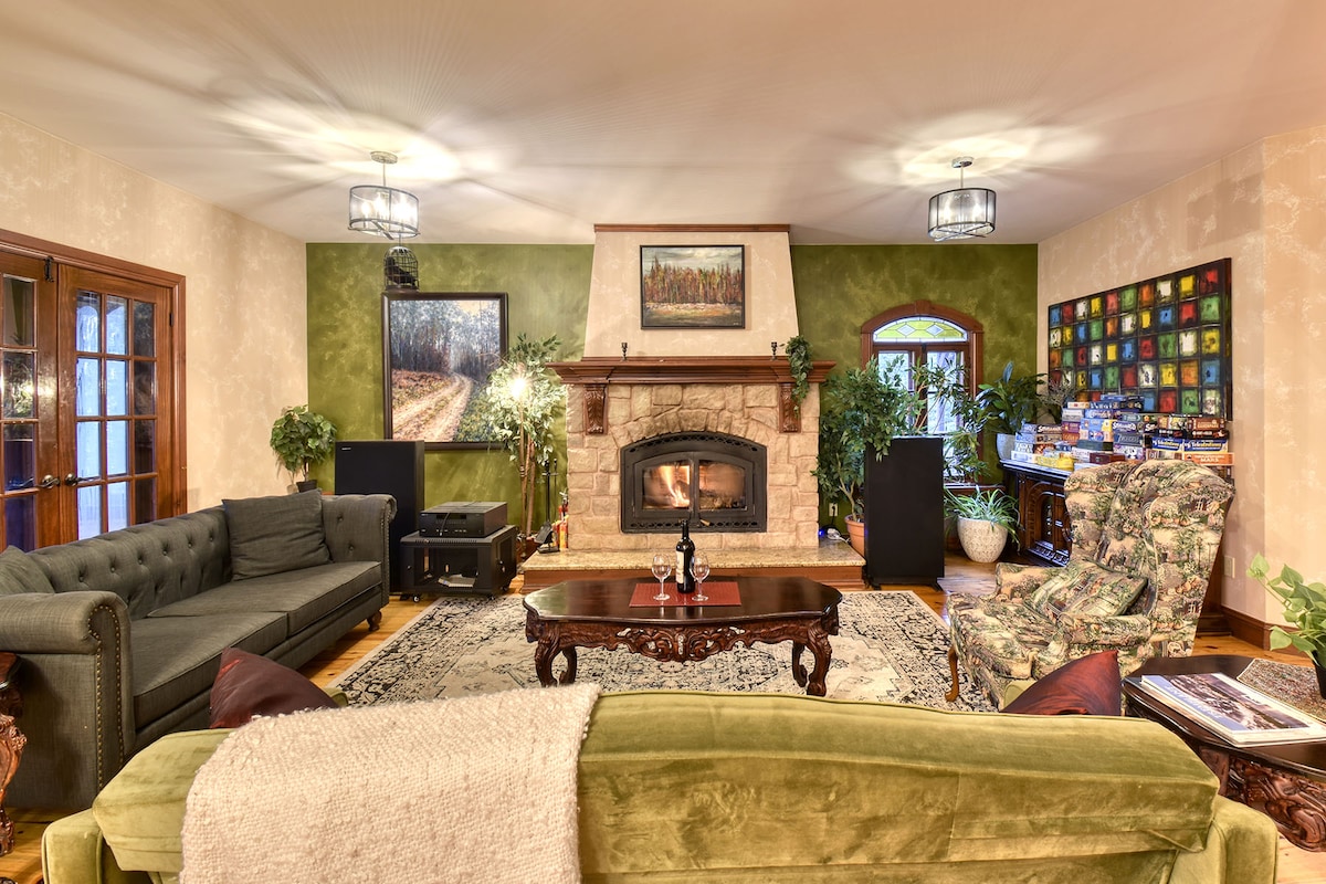 Disfruta de un merecido descanso y relajación en tu propio spa privado. Relájate en el jacuzzi y la sauna mientras escuchas las cataratas del río de fondo. Recuéstate en la hermosa y acogedora sala Chiminea mientras enciendes el fuego. A solo 20 minutos de Mont Tremblant, esta casa de campo privada tiene todo lo necesario para una estancia agradable.