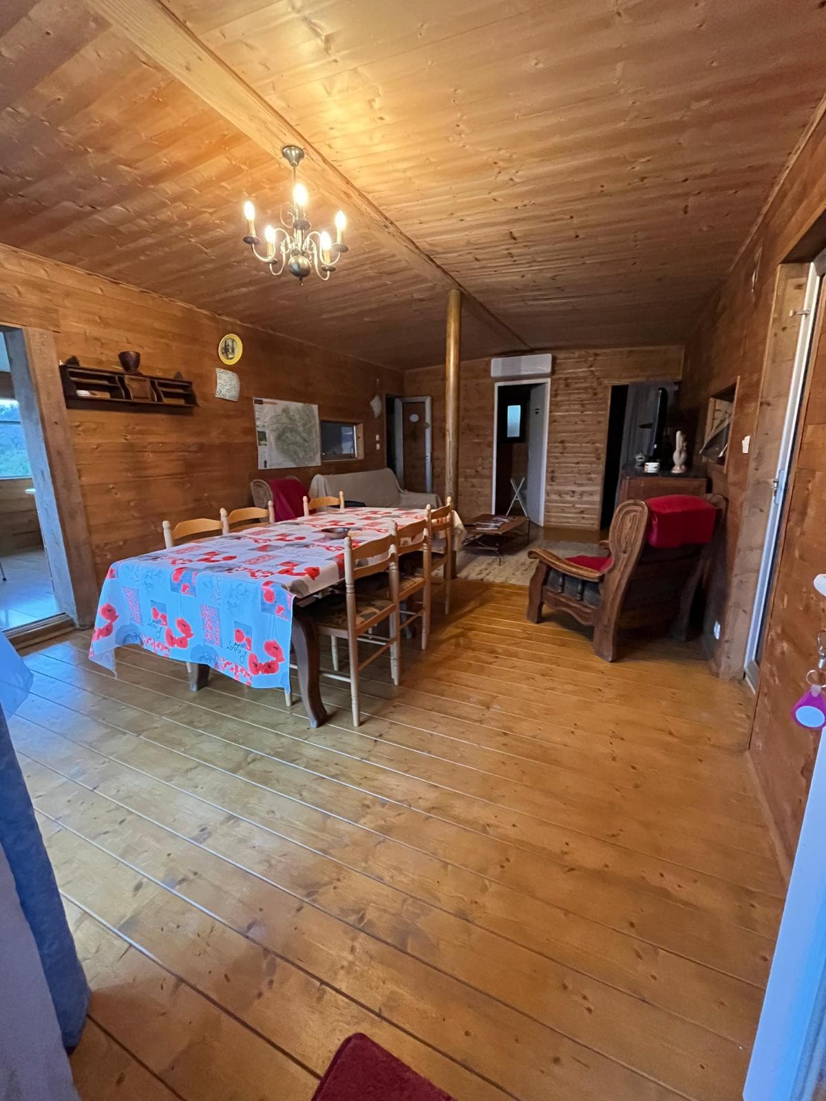 luminoso chalet de 100 m2 en 2 niveles. En la planta baja 1 dormitorio y 2 zonas de dormitorio con baño e inodoro acompañados de una sala de estar con chimenea. Arriba espacio abierto cocina sala de estar Sam así como hermosos ventanales abiertos a la naturaleza idealmente situado en una zona tranquila en un callejón sin salida y al comienzo de muchas rutas de senderismo ofrecemos el chalet hasta 6 personas/ 8 personas posible con cama supletoria