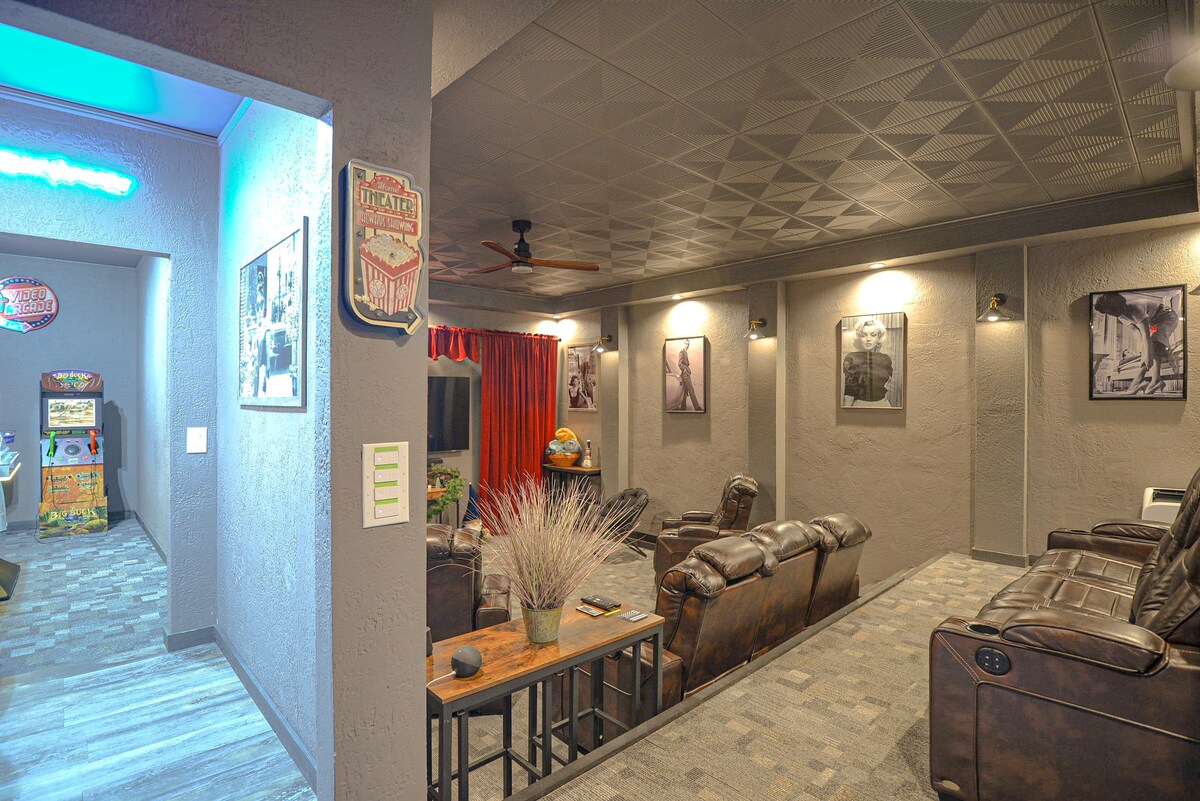 This spacious and cozy home is built for big family getaways, with games and entertainment for the whole crew; including MOVIE THEATER, ARCADE, POOL TABLE, KARAOKE MACHINE, POKER TABLE & GAMES GALORE! Quick access to Flathead Lake's boat launch and restaurants in Lakeside only 2 miles away. And 47 miles from the stunning views of Glacier National Park. Plus a big yard, deck and grill for an outdoor rendezvous. Worried about a rainy vacation? Book here–there's plenty to do indoors!