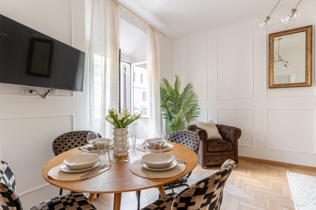 Welcome to Vatican Luxury Apartment! Located in the prestigious Prati district, this elegant newly renovated apartment is the perfect choice for a stay in the Eternal City. Just a few steps from the Vatican and only 600 meters from the A-line Metro, you can easily reach all of Rome’s main attractions. The area is full of restaurants, pizzerias, and bars, offering a wide variety of dining options for every taste. A perfect base to explore Rome with comfort and style!