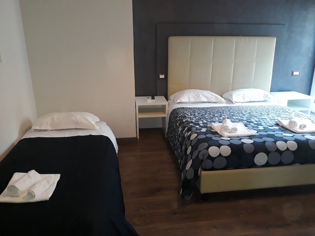 La stanza è molto confortevole, dotata di aria condizionata e riscaldamento. Include un letto nuovo (160x200), luci calde, tende oscuranti e un reggivaligia. Il bagno è attrezzato con doccia, bidet, saponi, asciugacapelli, carta igienica e asciugamani di varie dimensioni disponibili per ogni persona.