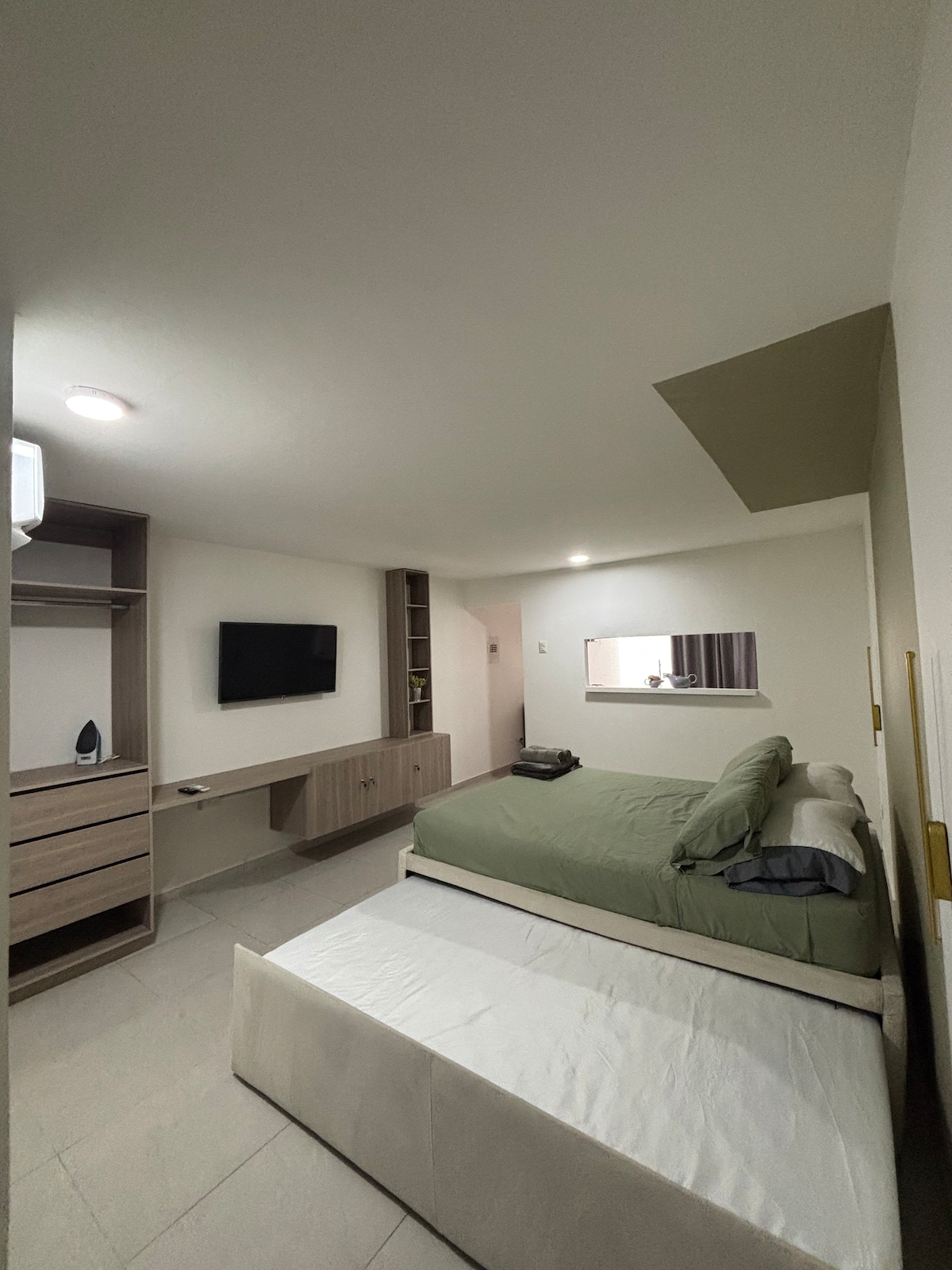 Disfruta de una estadía moderna y cómoda en este encantador apartamento dúplex ubicado en el barrio La Castellana, una de las zonas más exclusivas y seguras de Montería. Con un diseño de dos niveles, este espacio ofrece una habitación amplia con aire acondicionado, perfecta para descansar después de un día de trabajo o paseo por la ciudad, ideal para parejas o viajeros solitarios que buscan comodidad y privacidad.