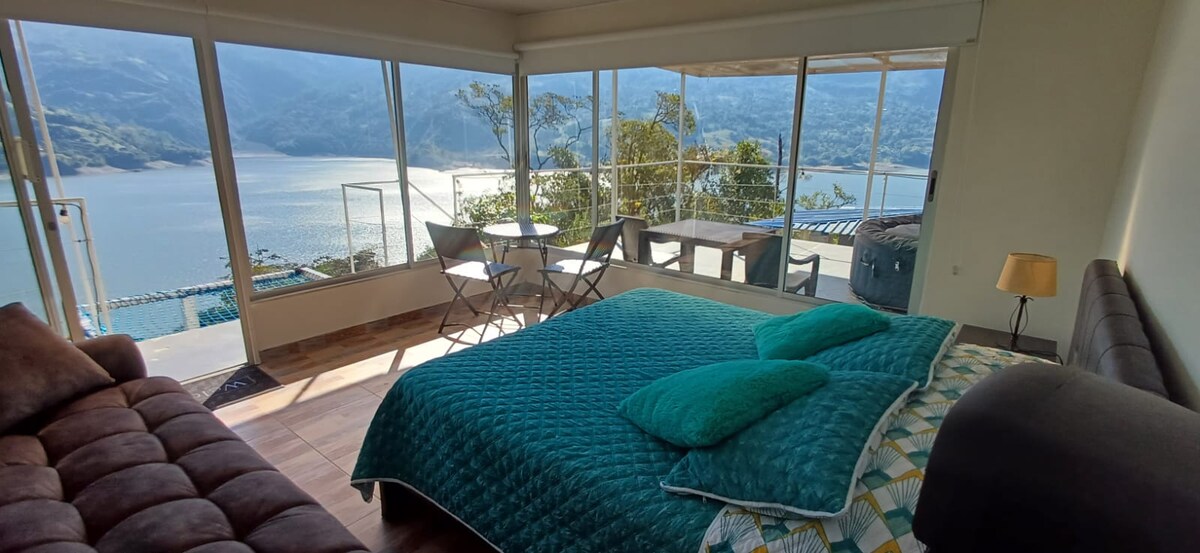 Imagina despertar con una vista impresionante al Embalse La Esmeralda, respirar aire puro y disfrutar del silencio del campo. En nuestro apartamento en Macanal, Boyacá, tienes todo lo que necesitas para una estadía perfecta. Ideal para parejas, grupos de amigos o familias que desean alejarse del ruido de la ciudad sin renunciar al confort. ¡Reserva ahora y experimenta la paz que solo este lugar puede ofrecerte!