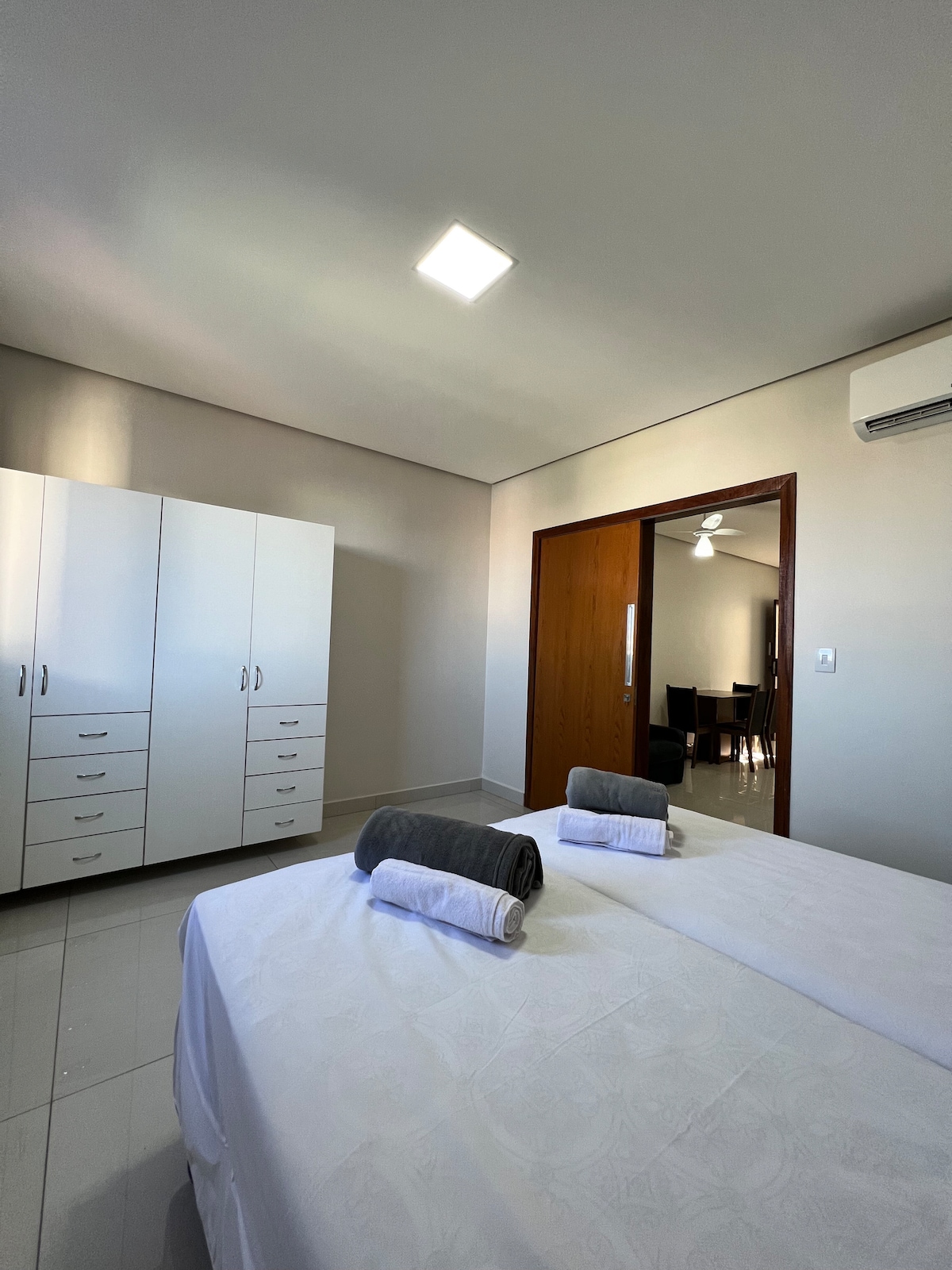 ¡Apartamento totalmente equipado y céntrico cerca de todo! Consta de 3 camas individuales que se pueden unir para formar una cama doble, aire acondicionado, TV inteligente en el dormitorio, sala de TV con sofá cama, cocina equipada con airfryer, licuadora, cocina cooktop, vasos, tazas, cubiertos, ropa de cama, mesa y baño, baño con ducha increíble y mucho más. Ubicación segura, y frente al Hospital Dilson Godinho, y al lado de Codevasf. Si necesita estacionamiento, hay uno privado enfrente.