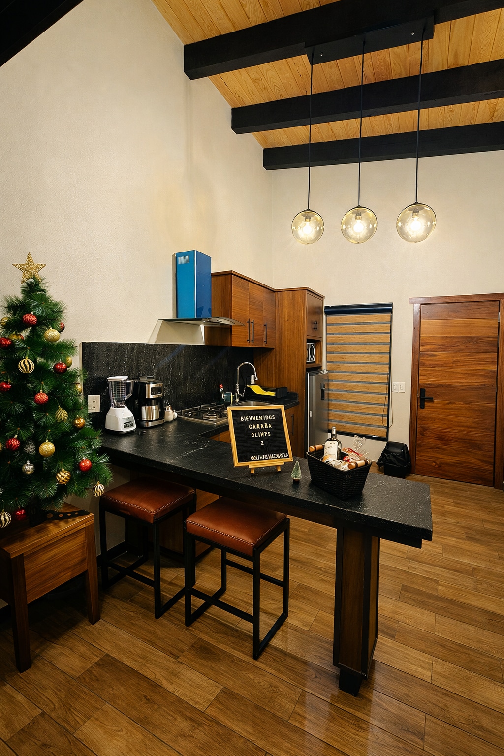 Cabaña en Paseo de los Cazos, perfecta para disfrutar en familia o con amigos. Ubicada a solo 5 minutos del centro, 15 minutos de la cascada y 3 minutos de la renta de caballos y motos RZR. De estilo mediterráneo y diseño sustentable, construida con materiales naturales que crean un ambiente cálido, relajado y en armonía con la naturaleza. Cada espacio está pensado para convivir, descansar y crear momentos inolvidables rodeados de tranquilidad.