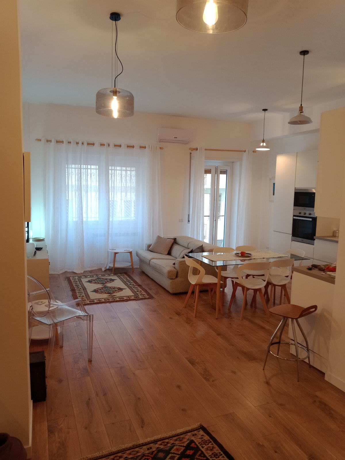 Abrimos la puerta de este espacioso y acogedor apartamento ubicado en Trastevere, ideal para familias o grupos de hasta 5 personas. Recientemente renovado, se encuentra en el segundo piso de un edificio con ascensor y ofrece una vista abierta de la plaza donde se celebra el mercado de Portaportese todos los domingos. La ubicación estratégica, a 5 minutos de la estación de Trastevere, donde paran los trenes procedentes del aeropuerto de Fiumicino y otras estaciones de la ciudad, hace que el apartamento sea una opción ideal para turistas o viajeros de negocios.