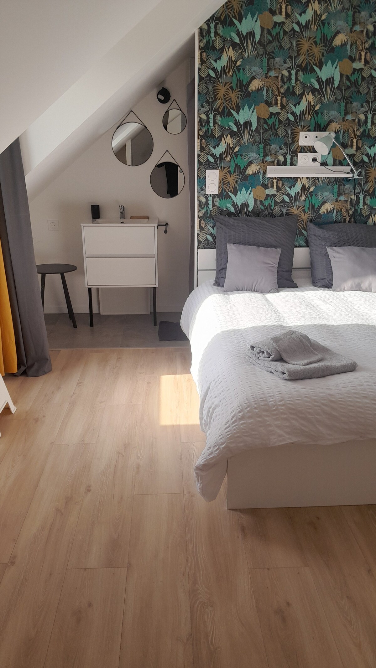 Bienvenido a este bonito apartamento de 37 m², situado en el barrio de Beauregard de Rennes. Ya sea que esté de paso por trabajo, un fin de semana o unos días en Rennes, todo está pensado para que se sienta como en casa. Autobús al centro de la ciudad cerca (a 5 minutos a pie). Las ventajas del alojamiento: • Habitación independiente (ropa de cama y toallas) • Cocina equipada • Salón luminoso con zona de comedor • Lavadora (detergente gratuito) • Lugar de estacionamiento gratis • Wifi