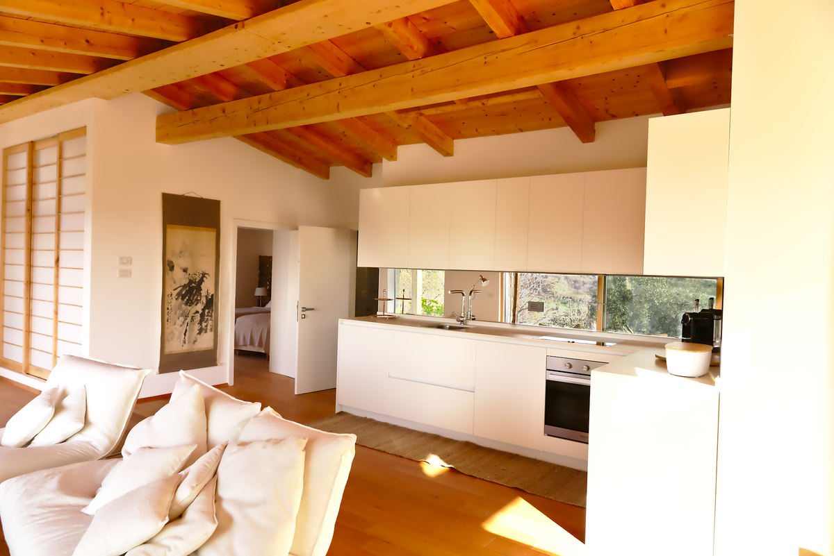 La Misura house is part of Borgo Montecastelli, a beautiful rural complex located right on the border between the provinces of Siena and Florence. Due to its strategic position, straddling two valleys, Borgo Montecastelli enjoys a magnificent panorama from its summit towards the villages that surround it: Panzano, Radda in Chianti, Castellina in Chianti, as well as farmhouses, churches, and towers.