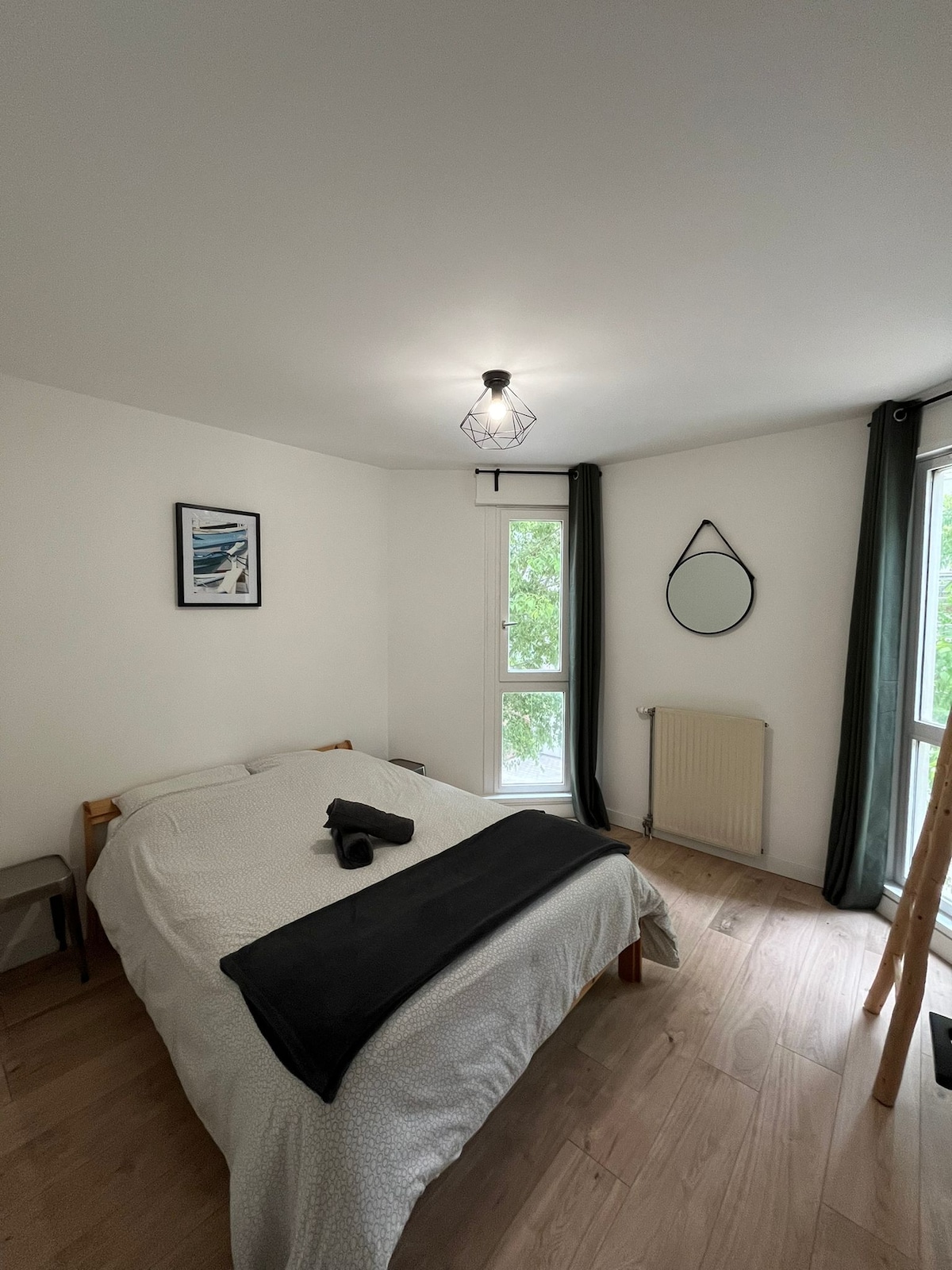 En la primera planta de nuestra villa, un alojamiento con entrada independiente, amplio dormitorio con baño y terraza de 60 m2 para usted. No hay cocina, pero hay una zona de aperitivos (nevera y microondas). Sábanas y toallas incluidas. , desayuno gratuito el primer día. Barrio arbolado ,zona peatonal a 12 minutos a pie . entre los nuevos barrios y el casco antiguo: aparcamiento gratuito en la calle. Posibilidad de alquilar algunos días a la semana durante todo el año para estudiantes en prácticas