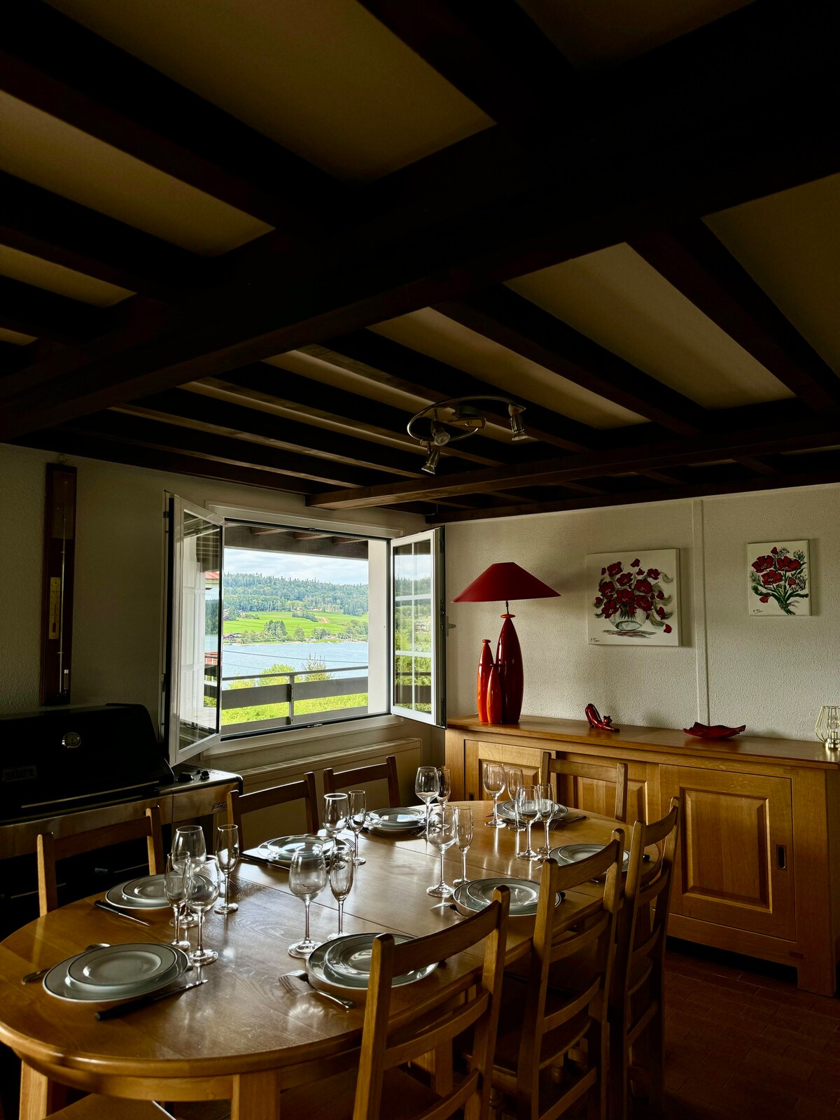 Logement paisible pour un séjour détente avec une vue exceptionnelle. Idéalement situé ,ce magnifique appartement de 100m2 rénové est doté de 3 belles chambres ,d'un salon spatieux avec le balcon sur le lac. La vue sur le soleil couchant est magnifique et vous garantira des moments de contemplation . La cuisine ouverte est toute équipée. Une des chambres est une suite parentale avec salle de bain . 5 -10minutes à pied du lac,et des commerces de proximité (superette ,boulangerie,restos..)