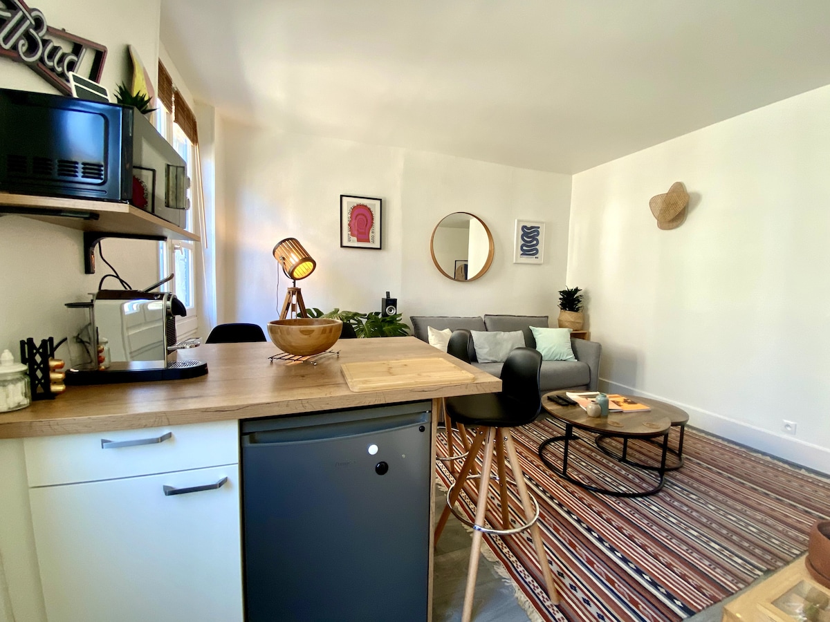 Ofrezco un acogedor apartamento de 35 m2 recién renovado y totalmente equipado, muy tranquilo. Le seducirá por su lado práctico y su ubicación. Un servicio de check-in/out autónomo te permitirá acceder a la vivienda con total autonomía. Situado a 2 minutos a pie del centro de la ciudad y de todas las comodidades, así como a 10 minutos de la estación de tren SNCF. Hay plazas de aparcamiento gratuitas disponibles cerca del alojamiento