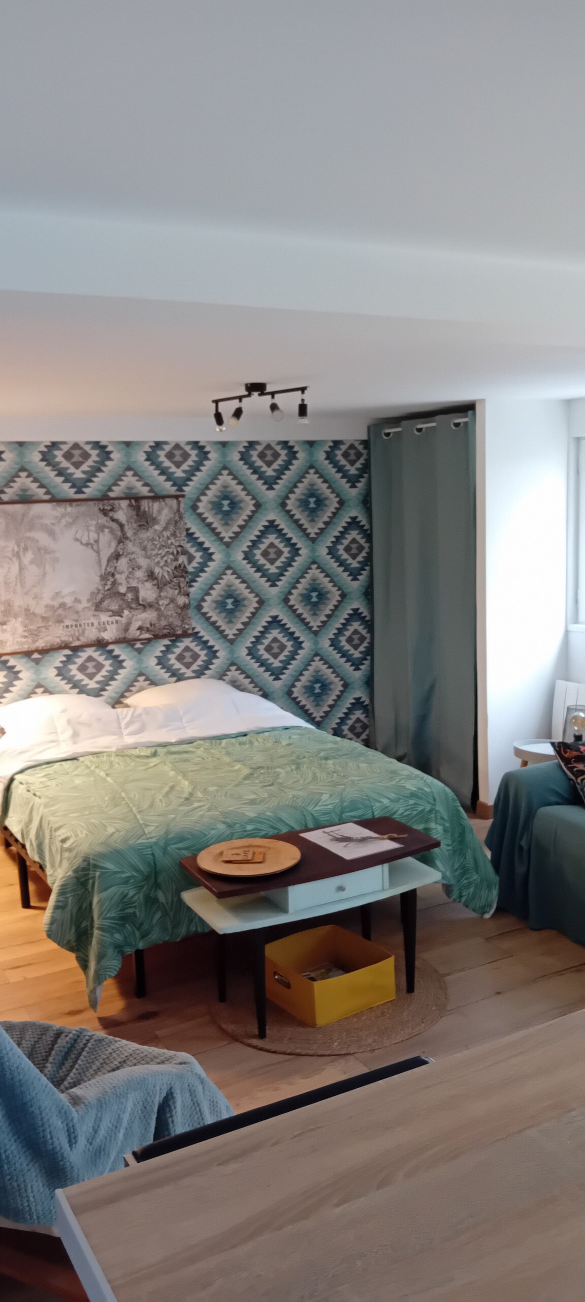Très joli studio petit cocon avec fenêtre donnant sur jardin, douche multi-jets et sèche-cheveux. Dispose de tout le linge de maison, du wifi et d'une keybox pour une arrivée autonome. Grand parking privé avec une place réservée à ce logement, grand fourgon possible. Accès au parc de la résidence ou des fauteuils et tables de jardin vous attendent. Le tout au calme, proche de la nature à Razac sur l'Isle, à 100m de la voie verte et ses 86km de piste cyclable.