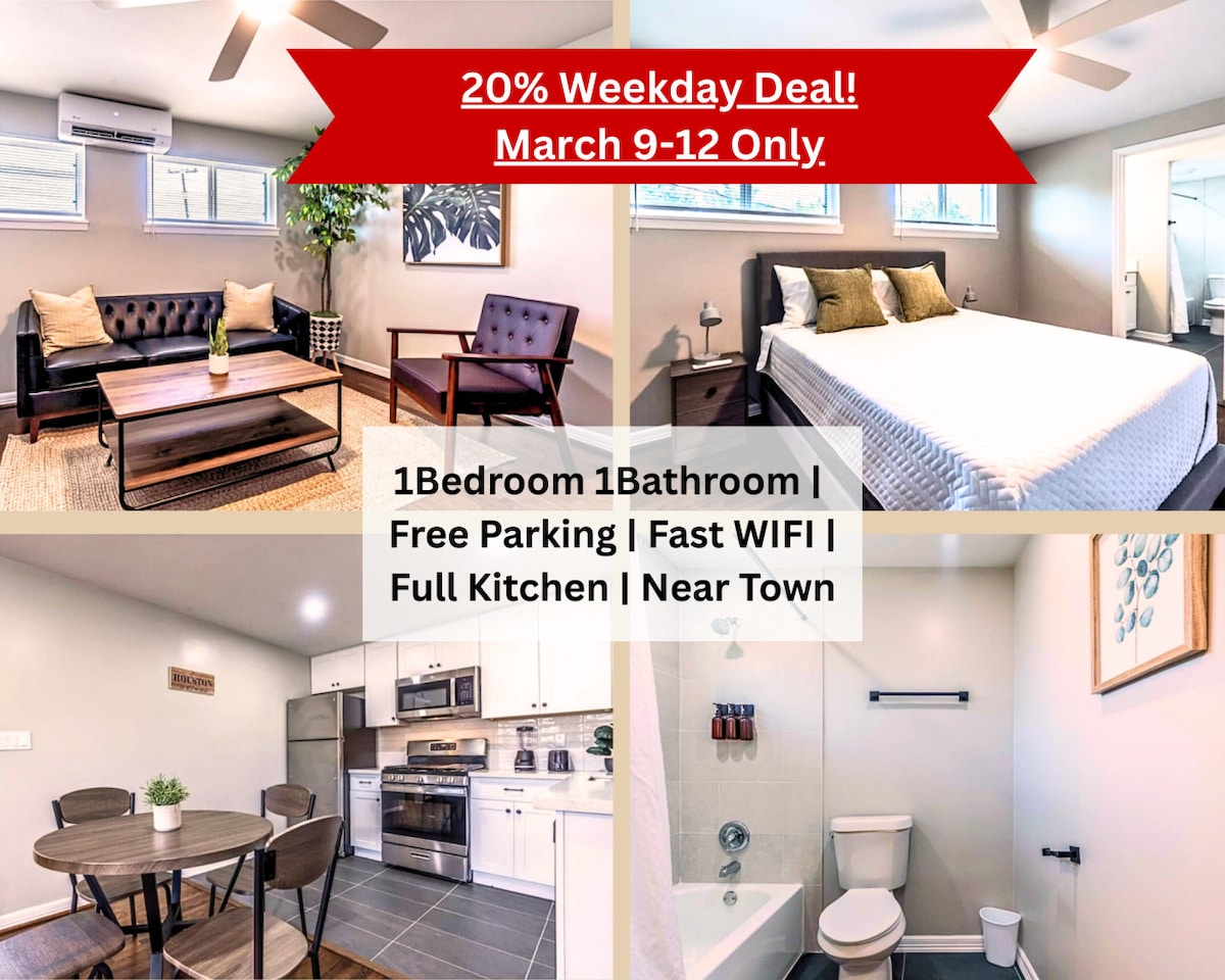 🌟 Montrose, Houston Stay — Near MD Anderson & Medical Center, FREE DEDICATED PARKING SPACE‼️‼️‼️ 🌟 Cozy 1st-floor apartment in Montrose, a safe, walkable neighborhood minutes from MD Anderson, Texas Medical Center, Rice University, Downtown, and Museum District. Perfect for medical visits, business trips, weekend getaways, or extended stays. Enjoy fast Wi-Fi, workspace, modern furnishings, and a quiet courtyard. Walk to restaurants, cafes, and nightlife. Book now!