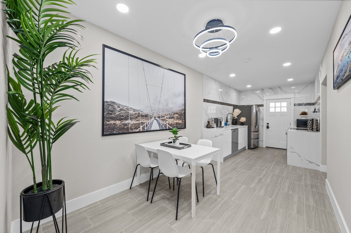 Este apartamento con garaje recién renovado y ultraelegante está situado en el centro de uno de los barrios más prometedores de Houston, Montrose/Mid-town, que cuenta con una amplia variedad de cafeterías, restaurantes, tiendas y bares, ¡todos a poca distancia a pie! Con una gran sala de estar con sofá cama y TV inteligente grande, una cocina de concepto abierto con asientos de bar y mesa de bistró, con un bonito dormitorio grande separado con colchón tamaño king de lujo/sábanas y un elegante baño en suite.