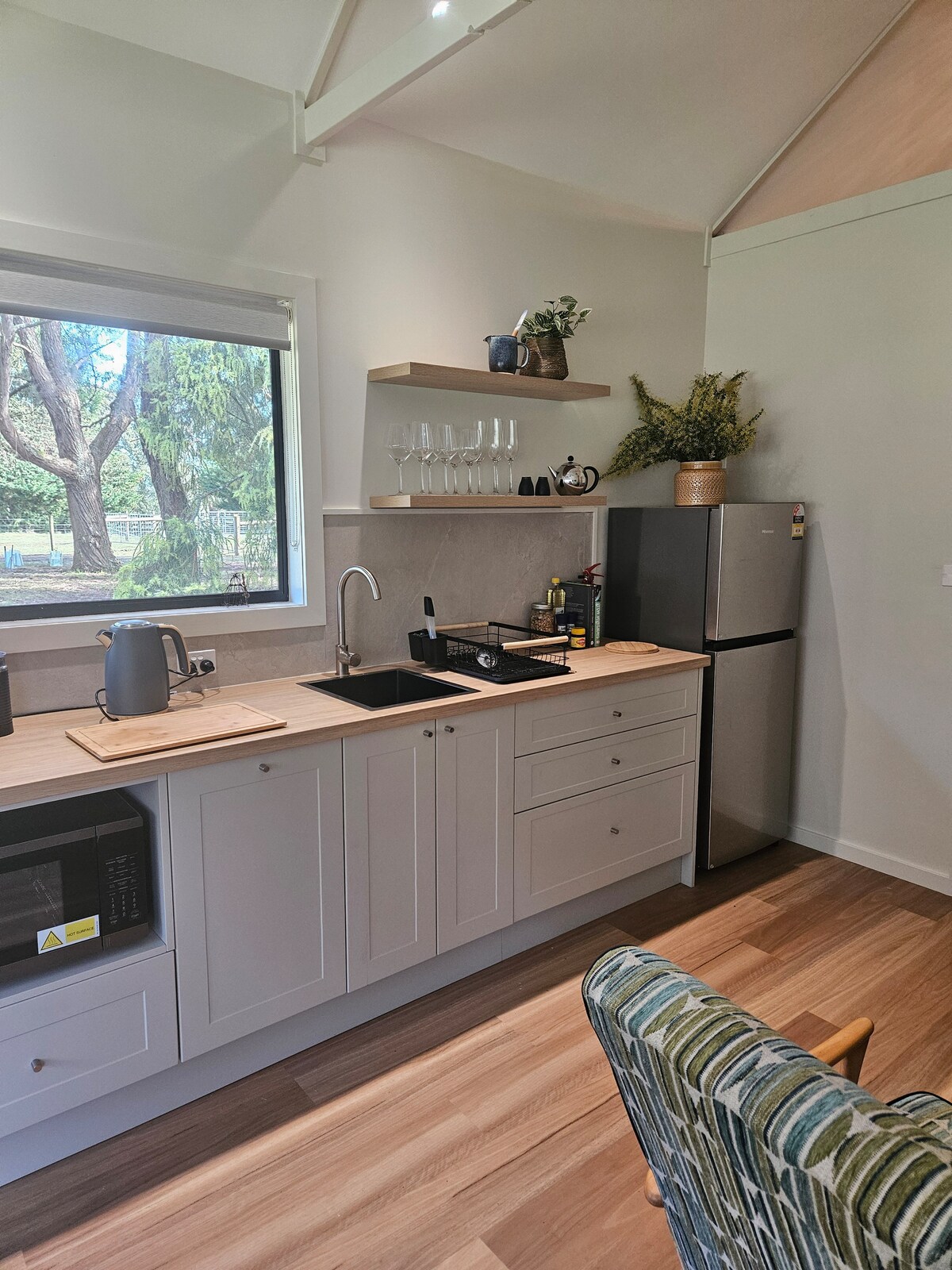 La casa de huéspedes Bacchus es una vivienda independiente de un dormitorio en la parte trasera de la residencia principal, rodeada de jardines nativos y árboles frutales, a solo 3 kilómetros de la calle principal de Bacchus Marsh. La cocina completa viene con estufa, horno, nevera, microondas, tostadora, vajilla, todos los utensilios de cocina, tetera y cafetera.