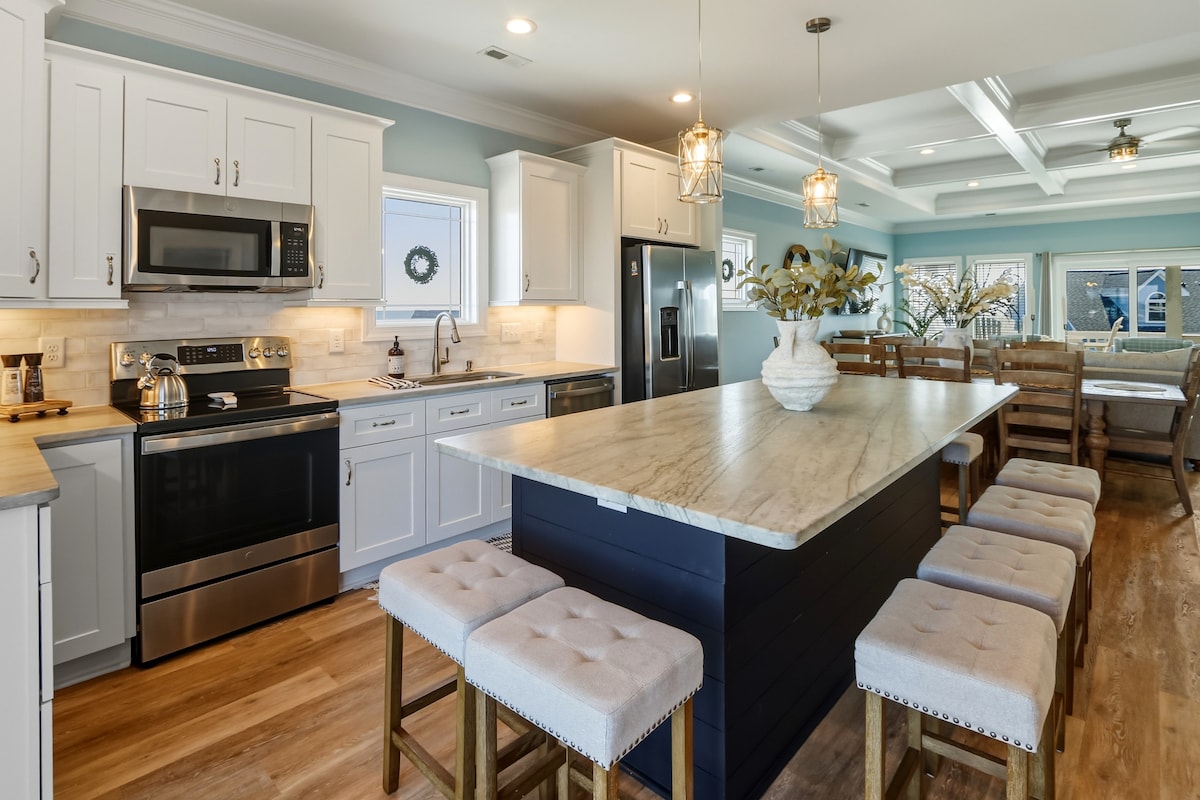 ¡Vistas! ¡Vistas! ¡Vistas! ¡El refugio definitivo frente a la playa para tu escapada tranquila a solo unos pasos de las hermosas arenas de Indian Beach! Completamente renovada y con una nueva piscina climatizada. Espectacular casa unifamiliar frente al mar de 7 dormitorios y 5 baños con una gran piscina que ofrece impresionantes vistas del Océano Atlántico. La amplia casa tiene una generosa cantidad de espacio para mantener a todos entretenidos: - Dos habitaciones familiares con televisores de 85" para divertidas noches de cine - Mini sala de juegos. - Mesa de futbolín.
