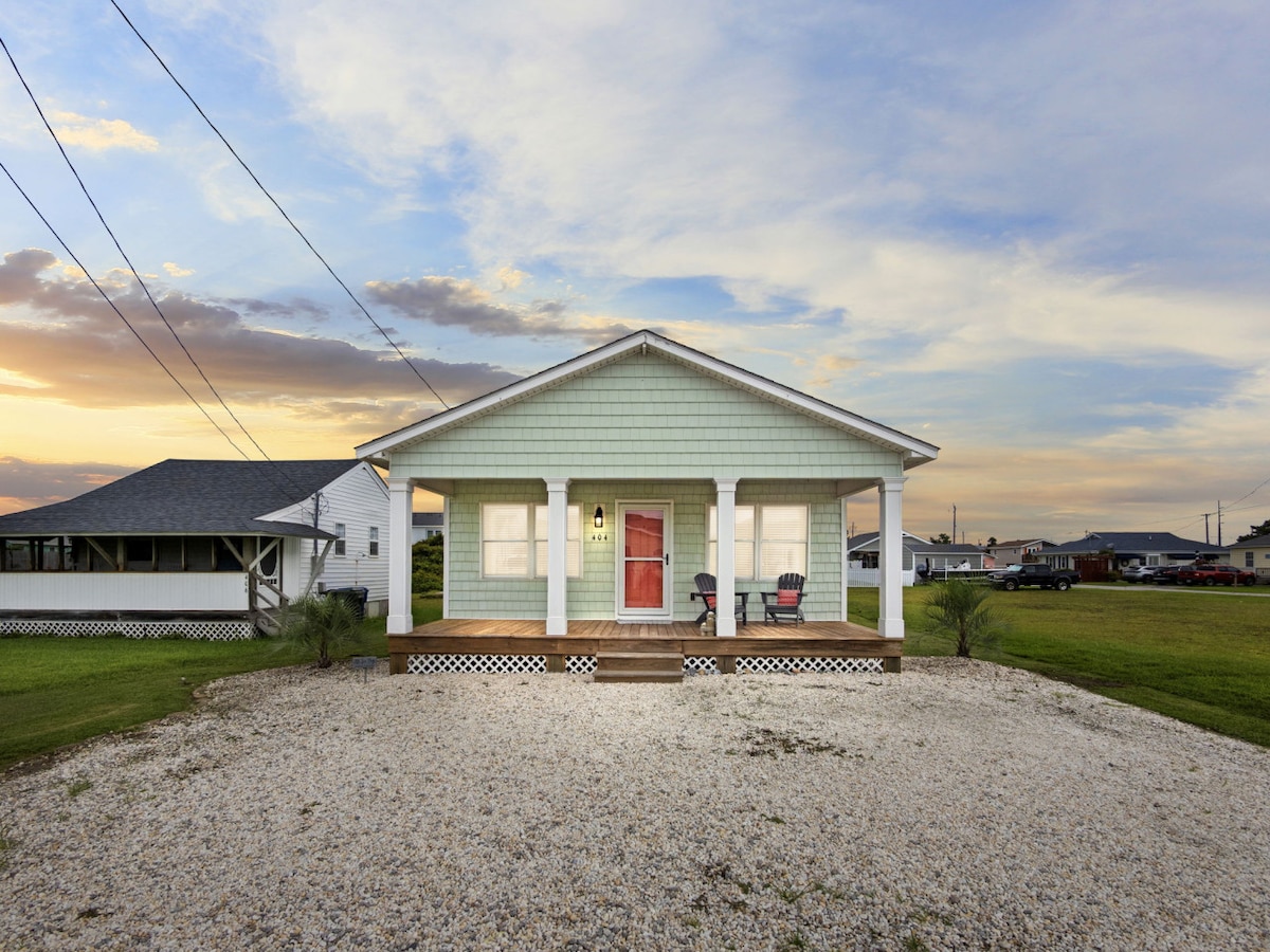 ¡Te damos la bienvenida a la belleza y la naturaleza de Core Sound! La cabaña Yates está directamente en el agua y está diseñada para disfrutar de unas vistas espectaculares de Core Sound y del faro de Cape Lookout con grandes ventanales en 3 lados. Otros servicios incluyen un porche con una gran pantalla, un pozo para encender una hoguera y un gran patio para juegos de césped. La casa de campo Yates es ideal para parejas, familias, perros, corredores, caminantes, ciclistas, pescadores y navegantes. Te recibiremos con camas recién hechas, toallas y una cocina completa con utensilios de cocina Keurig y Rachel Ray.