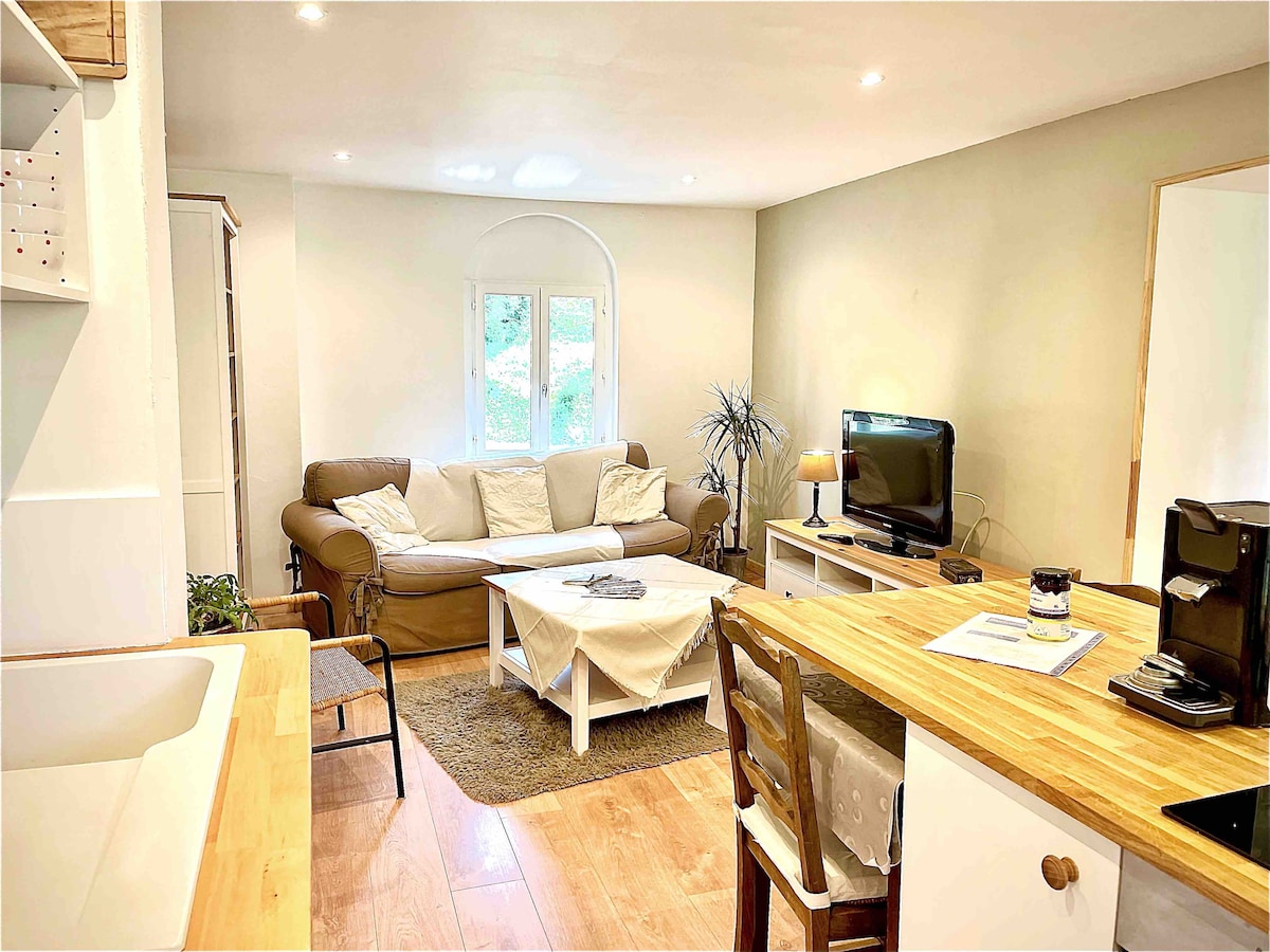 Situado en el corazón de Pau, cerca de todos los comercios, en el primer piso de un pequeño edificio del siglo XIX, el apartamento consta de una bonita cocina abierta, totalmente equipada para comer. Acogedor salón con un gran sofá cama, TV panorámica y zona de escritorio. Bonita habitación, cama queen size, vestidor. Cuarto de baño e inodoro separados. Orientado al sur, disfrutarás de unas vistas impresionantes de los jardines ocultos del centro histórico de Pau. Apartamento para no fumadores, ni siquiera en el balcón.