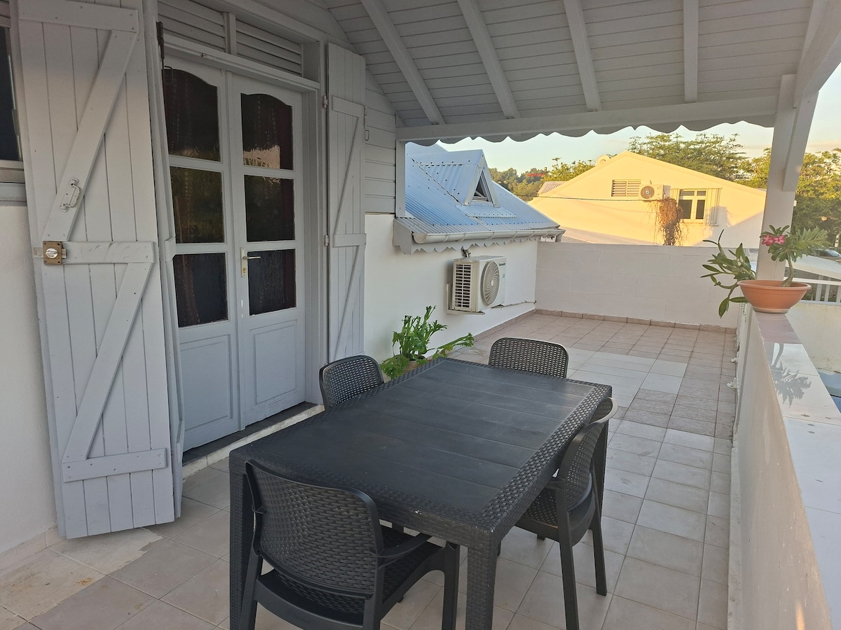 Bienvenido a este alojamiento de tipo T2 amplio y cómodo, a 3 minutos de una zona comercial. Le proponemos una escala estratégica en el corazón de la isla de la Grande-Terre. El alojamiento está situado en el piso de arriba de una villa con acceso independiente y consta de 1 dormitorio con aire acondicionado + cama de matrimonio, 1 cocina equipada, 1 baño +1 sala de estar/comedor, TV+ internet gratuito. Un punto ideal para recorrer la gran tierra, con todo lo necesario cerca.