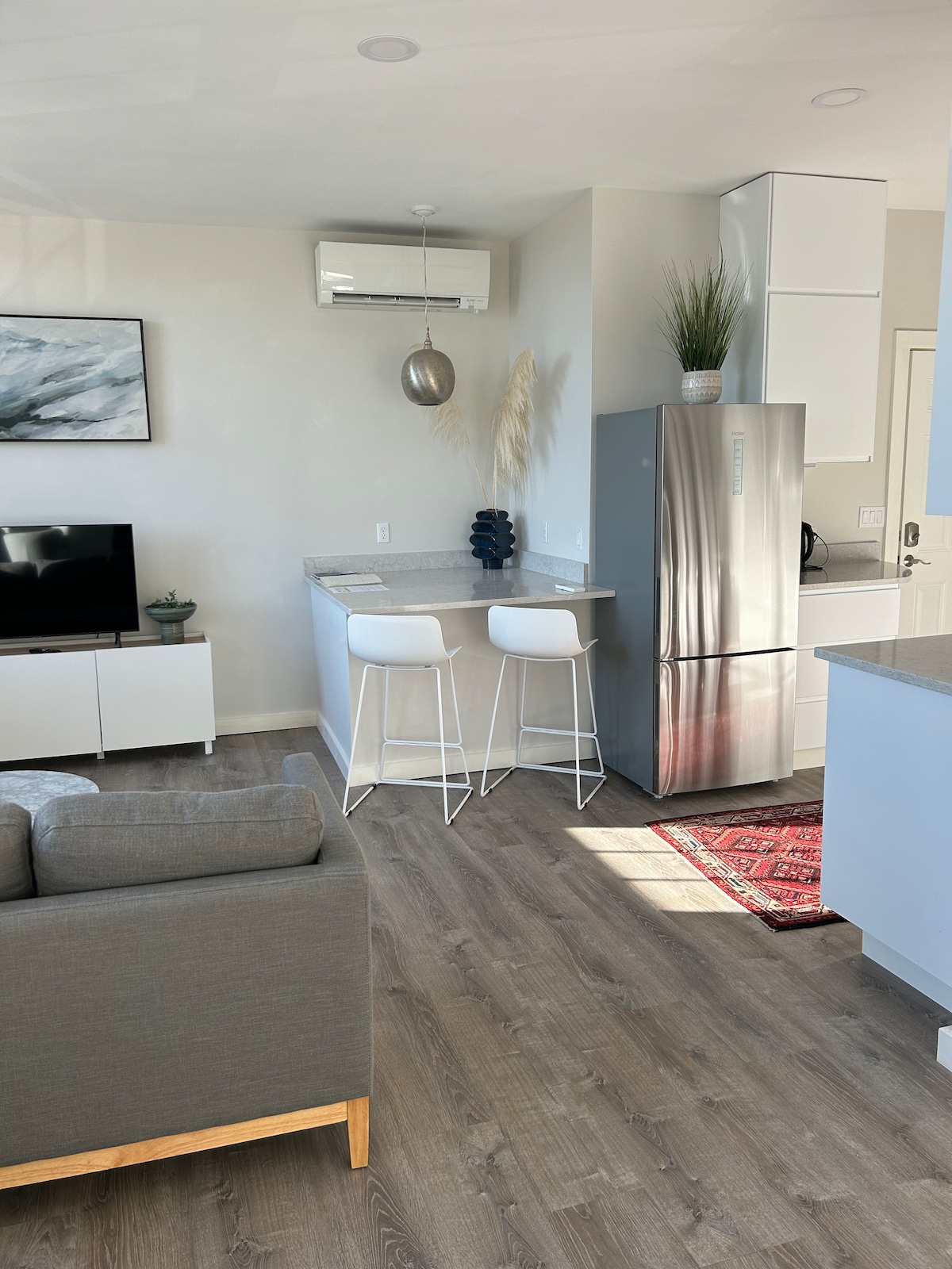 Disfruta de una experiencia luminosa, soleada y elegante en este apartamento céntrico en el segundo piso. Este apartamento tipo estudio con cama tamaño king de concepto abierto es perfecto para una pareja o una experiencia en solitario. (El espacio del dormitorio está definido pero no tiene puerta). Amplio y acogedor, con una cocina bien equipada y lavadora/secadora. Hay muchos restaurantes y tiendas cerca, con una magnífica cafetería en la planta baja. El paseo marítimo de Belfast, el mercado de agricultores del sábado por la mañana y el fabuloso Harborwalk están a solo 2 manzanas.