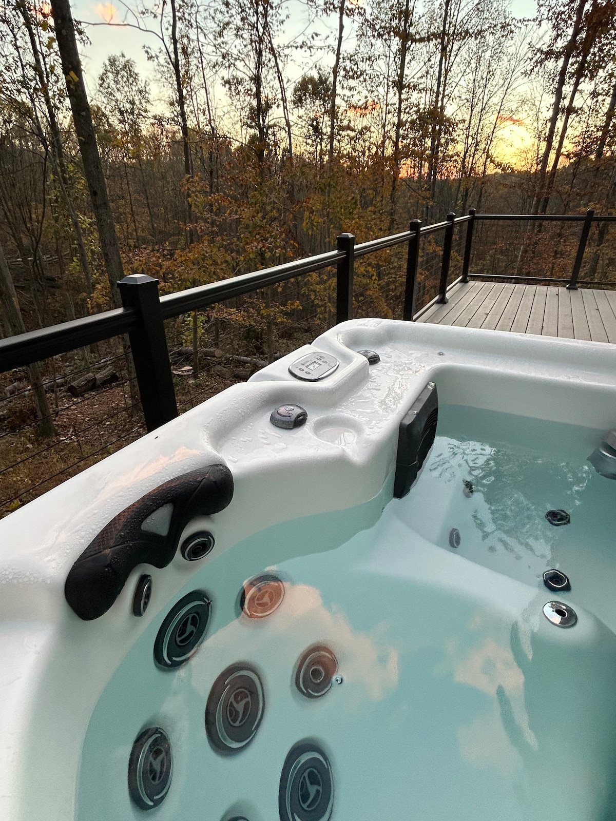 Relájate con toda la familia en esta tranquila cabaña en el campo. Rodeada de bosques, colinas y mucha vida silvestre que ver. Un estanque se encuentra a un agradable paseo por la colina gradual detrás de la cabaña. Situado en el corazón de Three Rivers Wine Trail, hay muchas bodegas para visitar, así como nuestra cervecería local favorita, la Wooly Pig. Hay una gran bañera de hidromasaje para disfrutar en la terraza exterior que es lo suficientemente grande para 8 personas.