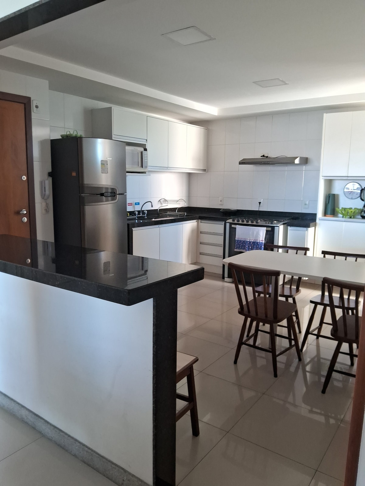 ¡Bienvenido a Orla Morro Stay, tu refugio exclusivo en Guarapari! Disfruta de días inolvidables junto al mar en este espacioso y completo apartamento con familiares y amigos, con más de 200 m de comodidad, ocio y una hermosa vista de la playa de Morro, con una ubicación privilegiada cerca de tiendas. Tiene 4 dormitorios (3 en suite) con 1 cama tamaño king, 2 camas tamaño queen, 2 camas dobles, 2 colchones individuales adicionales, 4 baños, una parrilla de barbacoa privada, una gran sala de estar, una cocina completa y un balcón con vistas espectaculares. 2x garaje