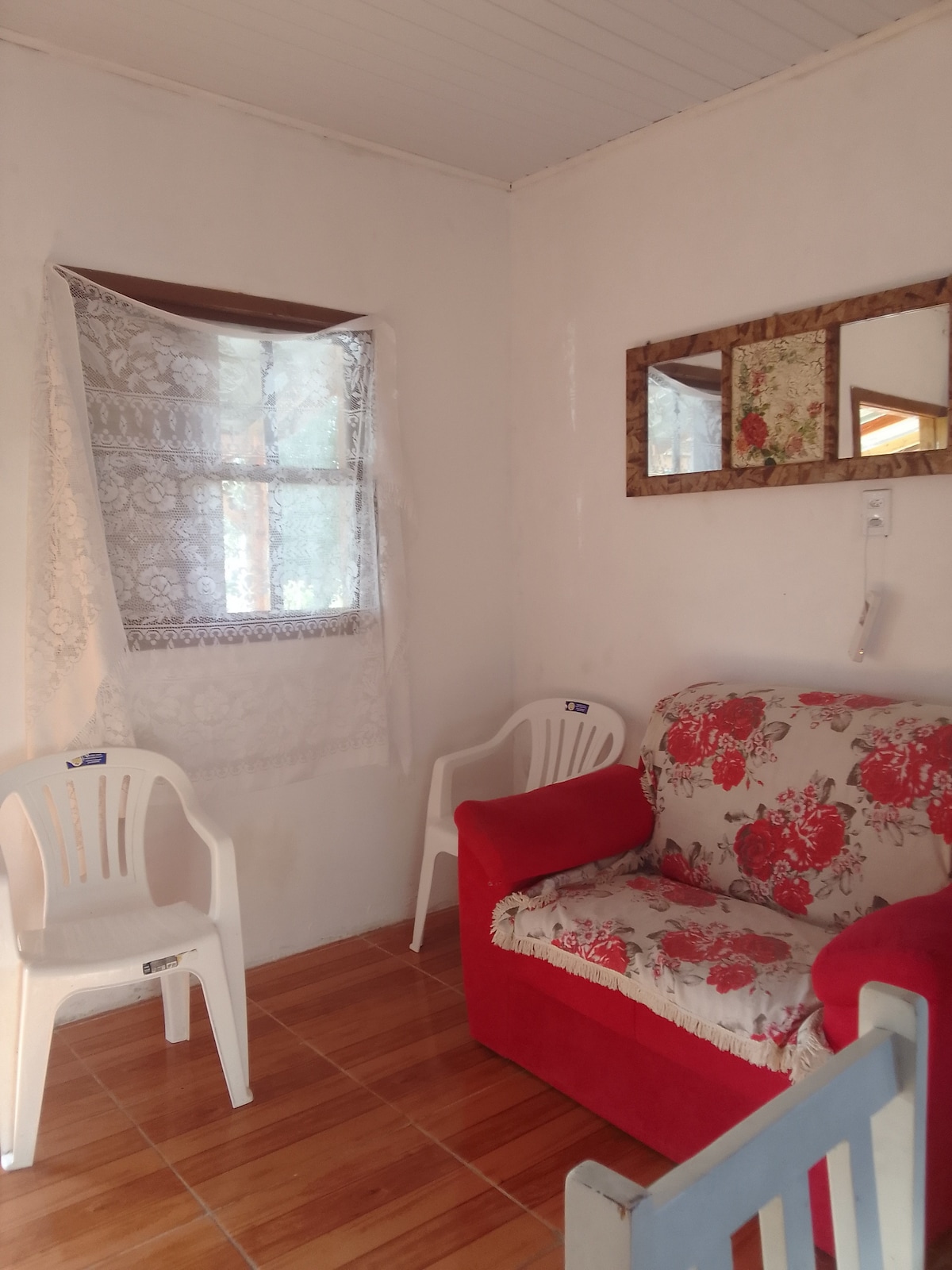Casa de campo para alquilar en sitio con aproximadamente 7 hectáreas. Tiene capacidad para hasta 6 personas. Situada a 800 metros del centro de la ciudad de Mostardas, a 12 km del mar y a 12 km de la laguna de los patos. Cuenta con 2 dormitorios, 1 de ellos en suite, baño, amplia cocina americana completa con armarios, cocina, nevera y comedor. Una sala de estar que da acceso al balcón con pérgola. Todas las habitaciones tienen ventilador de techo. Es necesario llevar ropa de cama, toallas y kit de higiene. Mínimo 2 noches