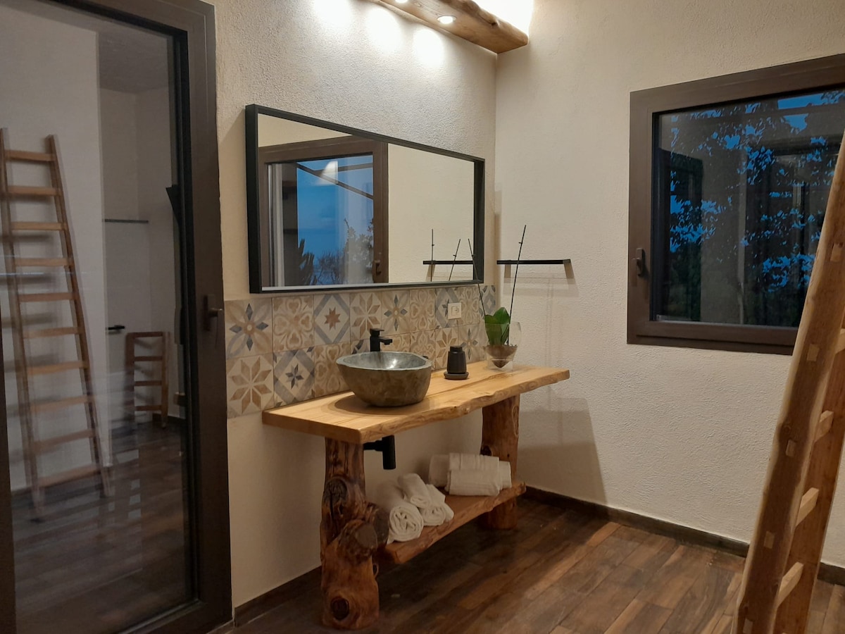 Bienvenido al Chalet con vistas al mar de Villa Loriana, un pequeño refugio independiente rodeado de vegetación al pie del monte Etna. Aquí, el tiempo se ralentiza: la chimenea de leña y las vistas al mar harán que tu estancia sea especial. El chalet tiene una cama doble y un cómodo sofá cama, un baño privado en la lava y una esquina de nevera: espacios sencillos pero bien cuidados, perfectos para una pareja o una familia de hasta 4 personas. La intimidad y la naturaleza se unen en una auténtica experiencia siciliana.