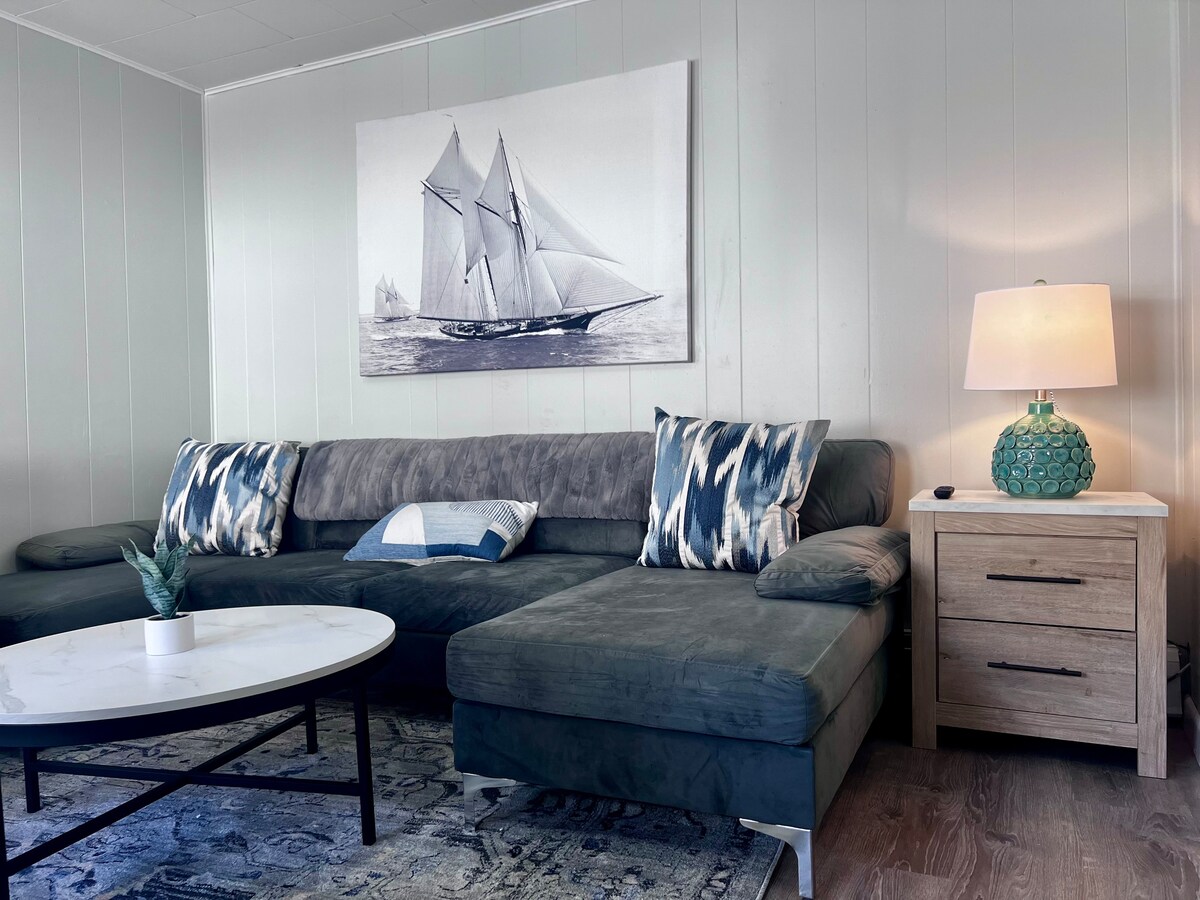En el corazón del puerto de Sunapee se encuentra «Topside», una encantadora suite para los huéspedes que quieran participar en la vida activa de Sunapee. Topside es perfecta para 2 personas y acogedora para 4. Un uso eficiente del espacio ofrece una cama tamaño queen, un sofá cama extraíble, un colchón de aire individual, una pequeña cocina equipada con alimentos para el desayuno, aperitivos y necesidades básicas de cocina, baño privado, wifi, TV inteligente, juegos de mesa y tu propia terraza en la copa de un árbol. ¡Muy limpia, elegante y cómoda!