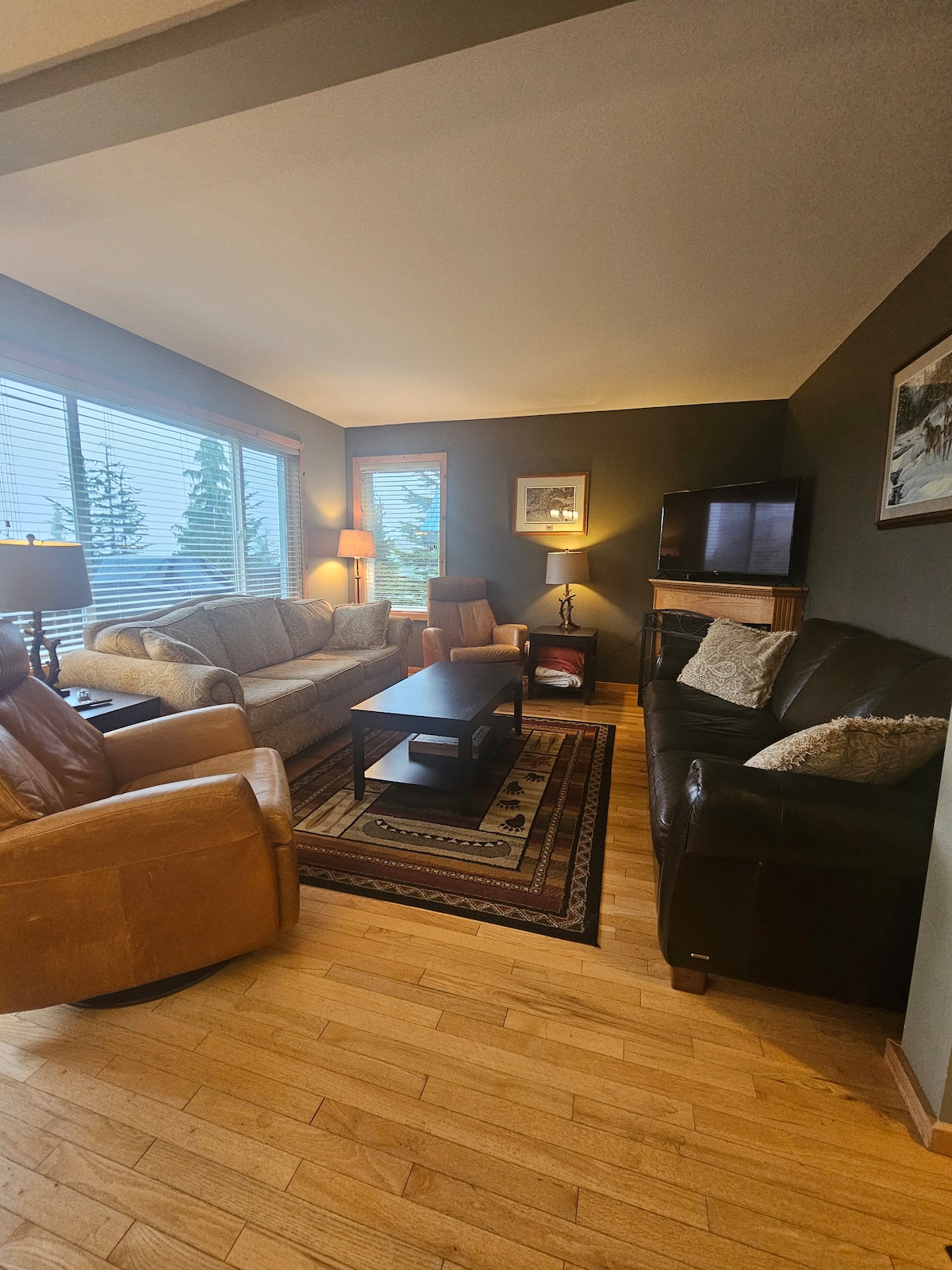 Divertida unidad superior del chalet para que la familia y los amigos pasen el rato y disfruten del clima de invierno de montaña con entrada/salida de esquí con estacionamiento. Simplemente relájate junto a la f/p mientras se juegan a la mesa, ¡disfruta de un poco de charcutería después de tu sauna de esquí Apres o un baño grande! A 15 minutos a pie del Alpine Lodge principal o un esquí rápido a la silla Hawk con la ventaja de una colina para montar en trineo, ¡visible desde tu terraza trasera! ¡Lo mejor de todos los mundos! ¡Televisores en todas las habitaciones con dispositivos de streaming! ¡Se admiten mascotas y niños con espacio para todos!
