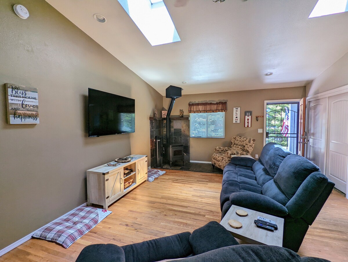 Welcome to your Cozy Pines Retreat! 🌲 Escape to our peaceful mountain getaway nestled among the Ponderosa pines in the quiet Mountainaire neighborhood. Just 10 minutes from downtown Flagstaff, our home is the perfect basecamp for your Arizona adventures. Best of all? Dogs stay FREE! Your pups will love roaming the large, fully fenced backyard while you relax by the fire pit. Enjoy fast WiFi, an updated kitchen, a cozy wood-burning stove, and fresh mountain air!