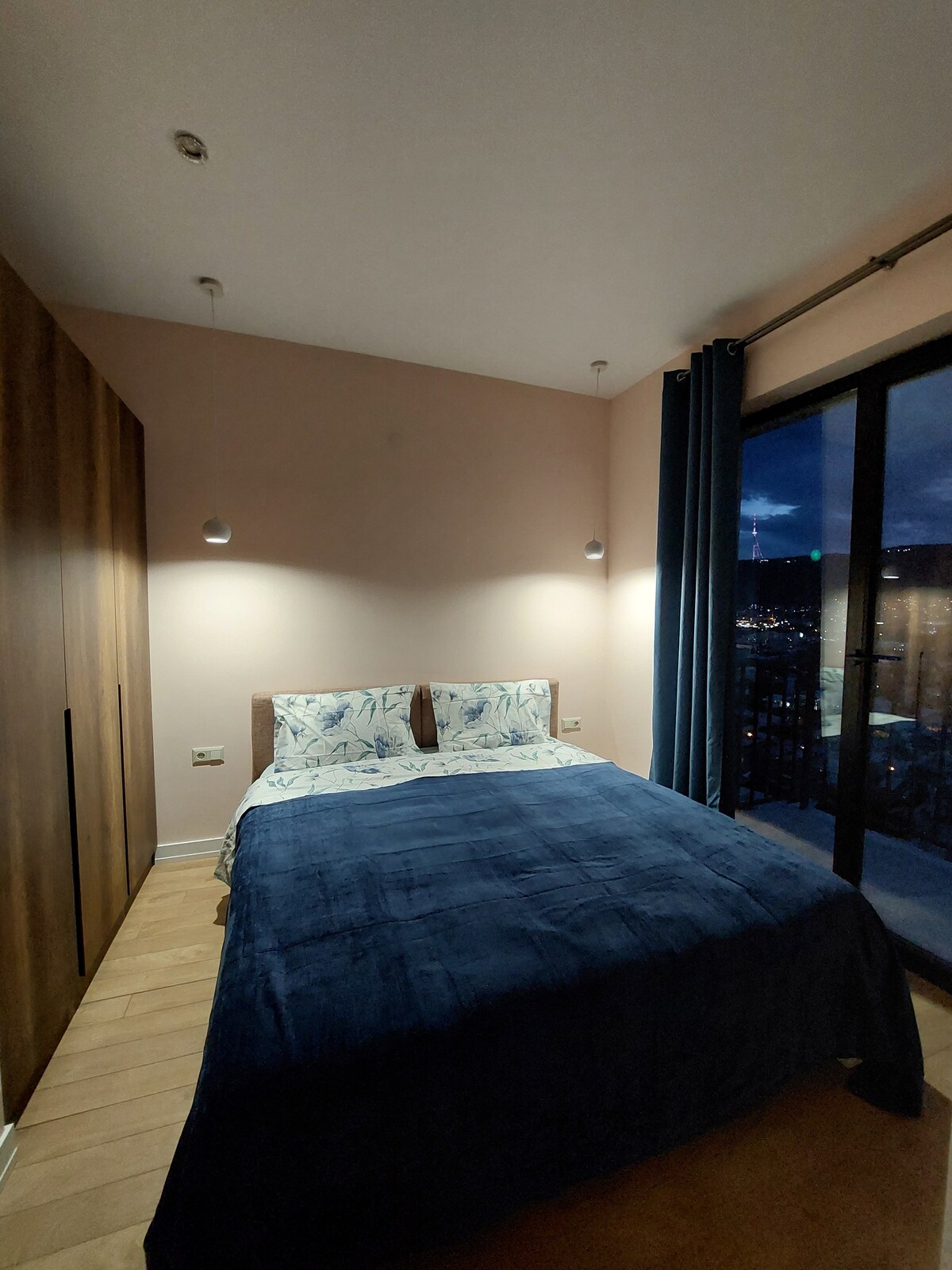 ¡El apartamento que te garantiza amar! Descubre la comodidad y el lujo en este apartamento céntrico en el piso 20 en Tiflis. Disfruta de vistas panorámicas tanto desde tu cama como desde la sala de estar. Con comodidades prémium y servicios adicionales dentro del complejo, tu estancia será inolvidable. **Tenga en cuenta que el acceso a la piscina y al gimnasio solo es posible pagando la cuota de socio del Centro de Bienestar Axis Towers.**