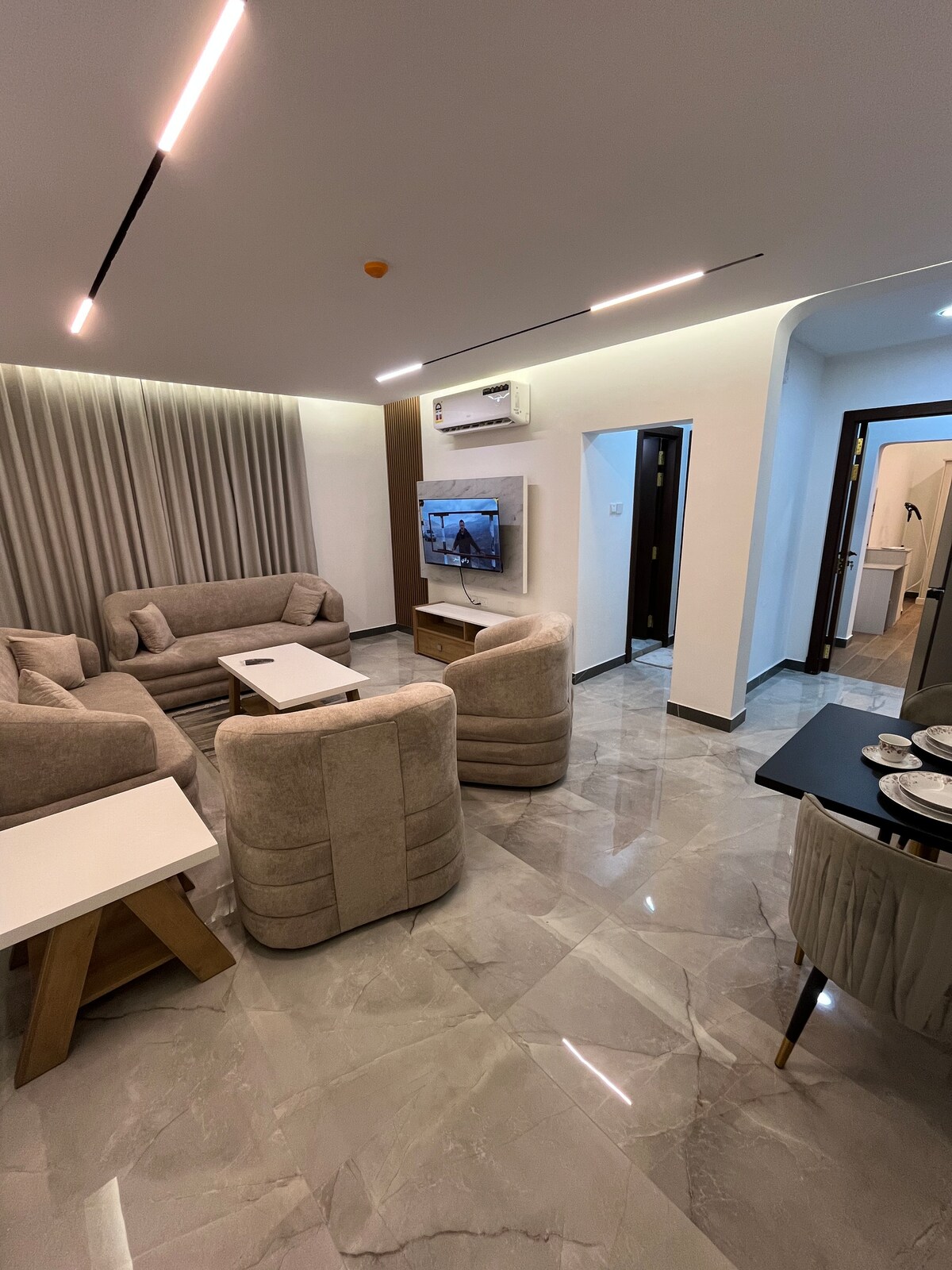 The apartment is located in Al Hidd city, right in the heart of a commercial street. It’s new, fully equipped with all the basic necessities, and designed to make you feel at home. The apartment is ready for long stays. If you are interested, please feel free to contact me. Your comfort during your stay with us is our top priority. Additional Services: • Airport shuttle available (€16) • Private car available for trips