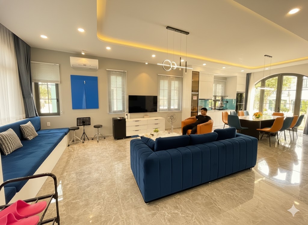 Relax in Style at Our Spacious Beach Villa in Novaworld Resort Looking for a peaceful getaway with family or friends? Our spacious 2-floor beach villa in the heart of Novaworld Resort is the perfect retreat. With a total land area of 200m², including a lush garden ideal for BBQs, birthday parties or gatherings, this villa combines comfort, convenience, and fun—all just 2 minutes driving from the beach