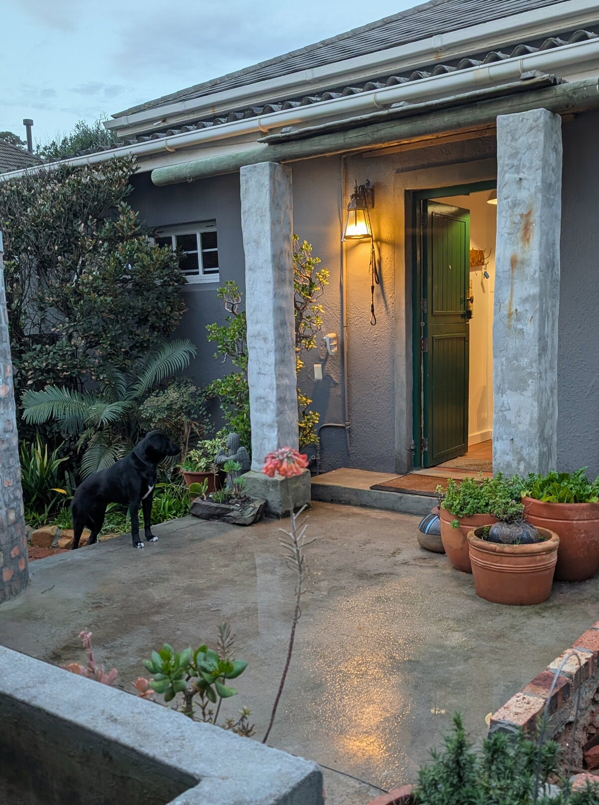 Este espacioso y acogedor apartamento de 1 dormitorio está a poca distancia a pie de la popular playa de Muizenberg, cafeterías y restaurantes. - Cocina abierta y sala de estar con vistas a la montaña ,vlei. - Espacio exclusivo para trabajar y chimenea. La cocina está completamente equipada. Hay una placa de gas de smeg. Hay un horno de pizza al aire libre, una zona de estar al aire libre con un pozo de fuego y una piscina ecológica. ¡Y un ducha al aire libre! - Nos enorgullece anunciar que acabamos de salir de la batería solar y las estancias de inversor encendidas.