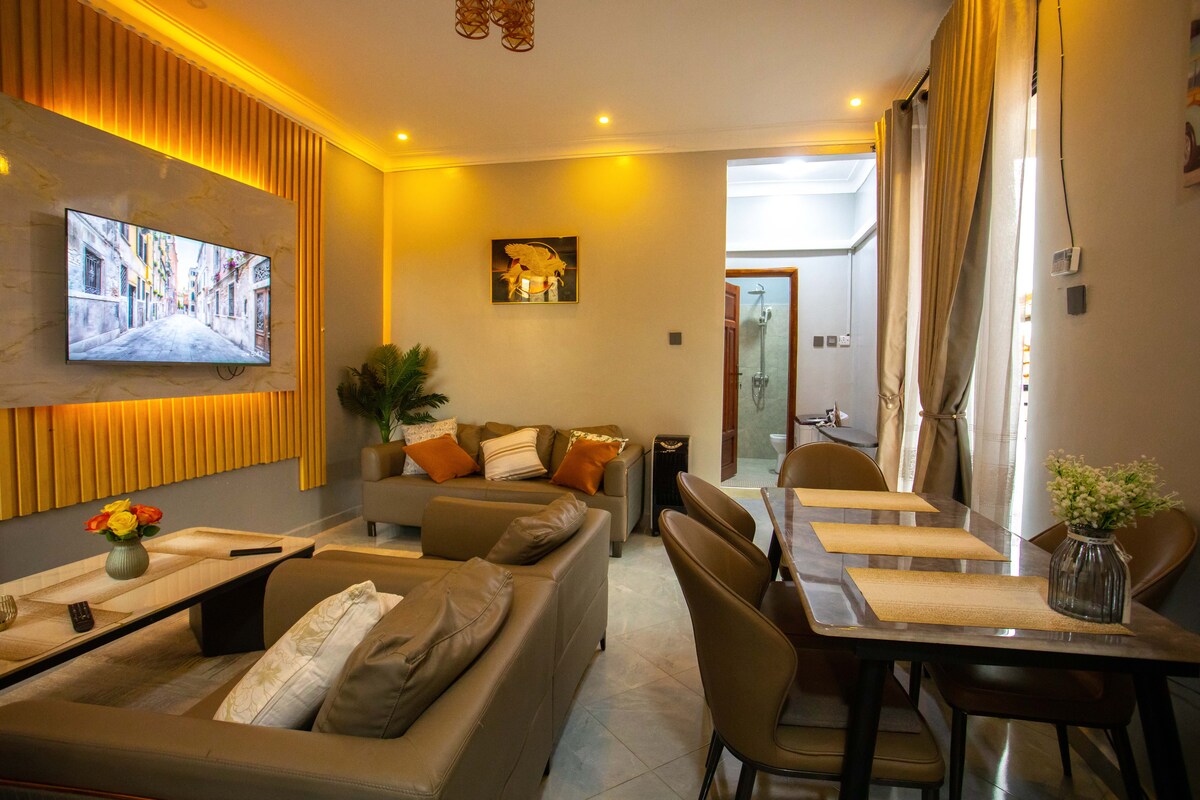 Experimenta lo último en comodidad y estilo con este elegante apartamento loft, ideal para viajeros solteros o parejas que buscan un refugio espacioso, soleado y moderno. Disfruta de impresionantes vistas del horizonte de Kampala y del lago Victoria, todo mientras estás convenientemente situado a medio camino entre Kampala y Entebbe. Este refugio totalmente equipado ofrece lujo y comodidad, lo que lo convierte en la opción perfecta para tu estancia.