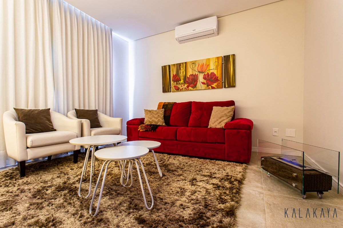 Apartamento nuevo con diseño moderno, de frente, en el corazón de Canela, a solo 400 metros de la Catedral de Pedra. La propiedad tiene 2 dormitorios, ambos suites, uno con cama doble y el otro con dos camas individuales. En la sala de estar, un sofá cama queen. Todas las habitaciones tienen Smart TV. Cocina completa equipada con todos los utensilios de cocina. Proporcionamos ropa de cama y toallas de calidad. Wifi en todo el apartamento. Aire acondicionado en los dormitorios y sala de estar. Estacionamiento gratuito.