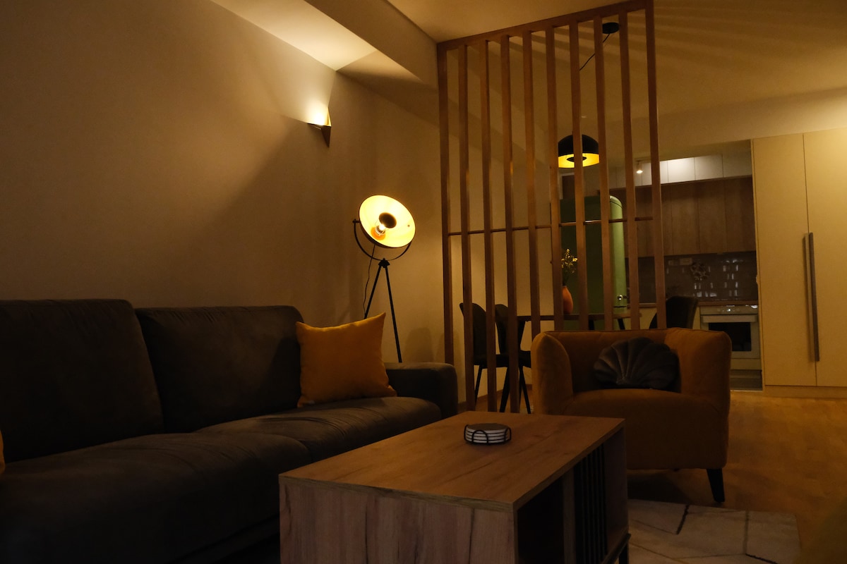 Discover your perfect stay in the heart of Skopje! Our brand-new apartment blends modern design with a sense of history, adding a touch of timeless elegance to the space. Located in the city's center, this space is perfect for exploring local attractions or finding inspiration while working remotely. You'll have easy access to cafes, restaurants, and supermarkets, all while enjoying the calm of a serene street. Experience comfort and style like never before!