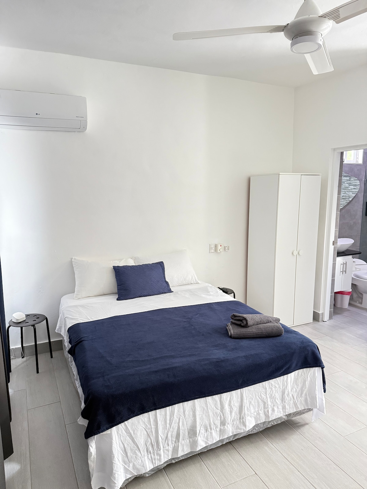 Disfruta de nuestra escapada para dos, a solo 50 metros de la playa y 5 minutos de la ciudad. El apartamento cuenta con 1 habitación, 1 cama queen size, 1 baño amplio y una cocina bien equipada. Todos los servicios básicos están incluidos, ¡sin cargos extra! Escríbeme para cualquier pregunta. ¡Te esperamos!