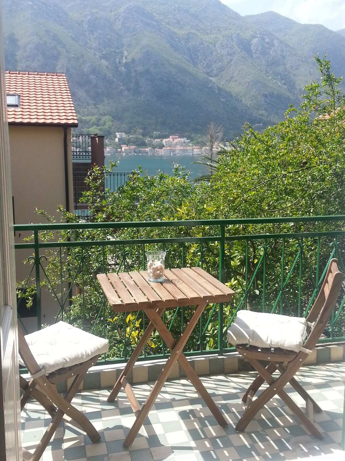 Cuando te despiertes por la mañana y abras los ojos, verás el mar a 10 pasos de tu apartamento. La tranquilidad de los barcos de curise , las montañas y el mar único en la bahía de Boka te hacen empezar el día con motivación. El casco antiguo de Kotor está a 15 minutos a pie. Está a 3 minutos en coche. El apartamento puede alojar hasta 4 personas. (cama doble para 2 personas, 2 camas que se pueden abrir en el salón) son ideales tanto para familias como para parejas. La casa lo tiene todo para cocinar, nevera y parque.