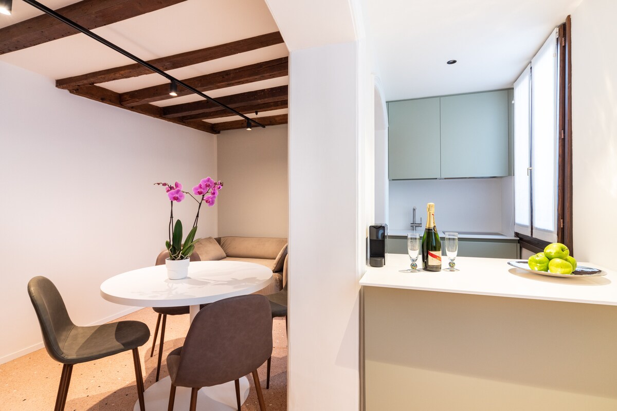 Un pequeño apartamento cuidado en cada detalle ideal para dos personas que se encuentra a 10 minutos de la Plaza de San Marcos. La vista privada al canal por un lado y el patio interior por el otro lo hacen único en su género. La casa está equipada con aire acondicionado y wifi ilimitado y en los alrededores hay numerosas tiendas, bares y restaurantes típicos. De acuerdo con las disposiciones para prevenir el contagio de la COVID-19, después de cada estancia se realiza una desinfección con tratamiento de ozono.