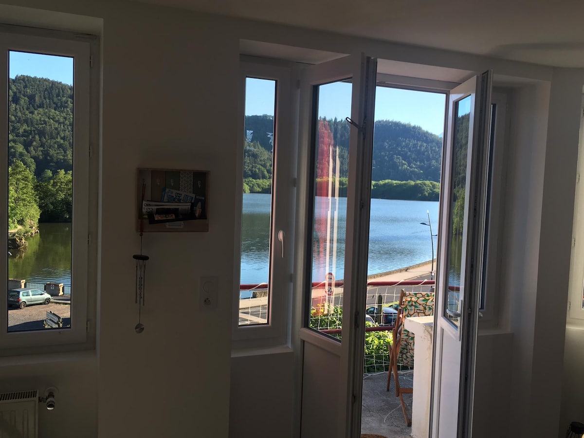 Situado a orillas del lago Chambon, en el corazón del macizo de Sancy y de los volcanes de Auvernia, apartamento de 32 m2 con balcón, en el segundo piso de un edificio de 3 plantas. Cocina equipada (horno, microondas, lavavajillas, nevera-congelador, cafetera, Tassimo...), sala de estar abierta con sofá cama, TV, un dormitorio con cama de matrimonio, cuarto de baño con ducha, lavadora e inodoro. Estaciones de esquí de Super-Besse y Mont-Dore a menos de 20 km. Bañarse, pescar, hacer senderismo...