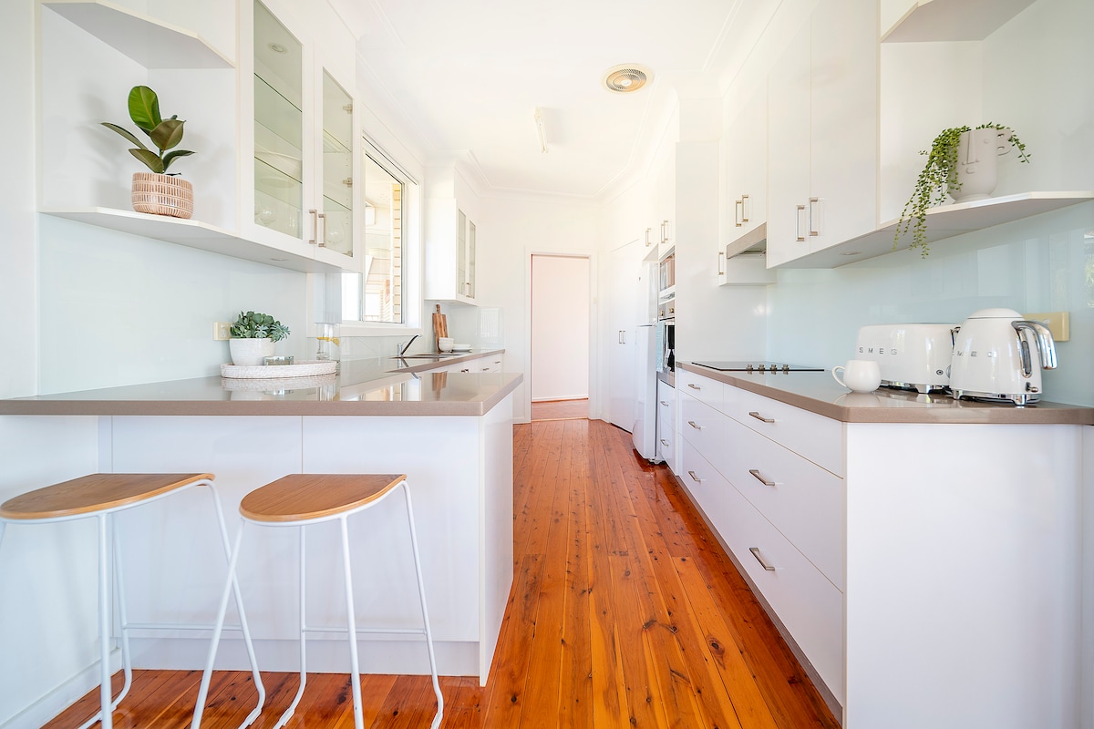 ¿Quieres alejarte del ajetreo y el bullicio de la ciudad? ¿Quieres disfrutar del sol, el surf y la arena en una acogedora casa de playa? Luego no busques más, nuestra joya costera a pocos pasos de una playa prístina. Relájate en amplias terrazas, observa delfines y ballenas o date un chapuzón en el resplandeciente mar. También admite mascotas, con jardines vallados y una playa apta para perros al otro lado de la carretera. Las mejores vacaciones junto al surf te esperan, a solo 90 minutos de Sídney.