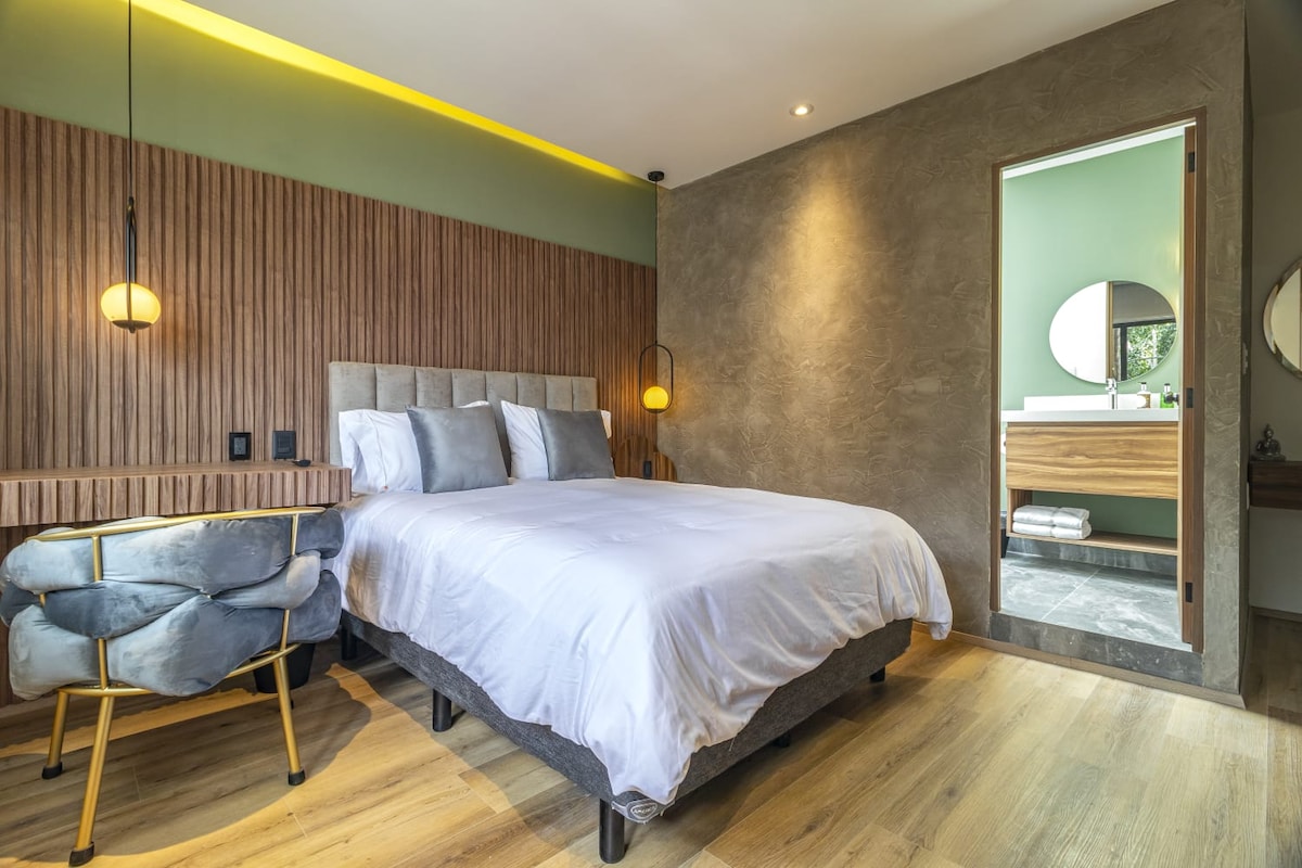 Nuestra Suite cuenta con cama king, cocineta equipada, sala de televisión (Smart TV), baño privado, muebles de diseño, internet de alta velocidad, aire acondicionado, en una excelente ubicación entre Paseo de la Reforma, Zona Rosa y las colonias Roma y Condesa, que son el centro de la vida más vibrante de la ciudad con todas las vías de comunicación , Metro, Metrobús, Turibus, Taxis.