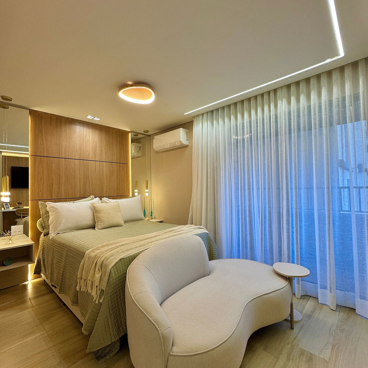 Flat de design assinado nos Jardins, a 2 quadras da Av. Paulista e 4 da Rua Oscar Freire. Ideal para quem valoriza conforto e localização estratégica. O apartamento oferece cozinha equipada, Wi-Fi de 500MB, garagem com manobrista e serviço de camareira em dias úteis já incluso. Acesso prático por código, sem uso de chaves. Perfeito para viagens a trabalho ou lazer, com a sensação de estar em casa e a praticidade de um hotel.